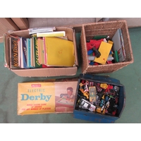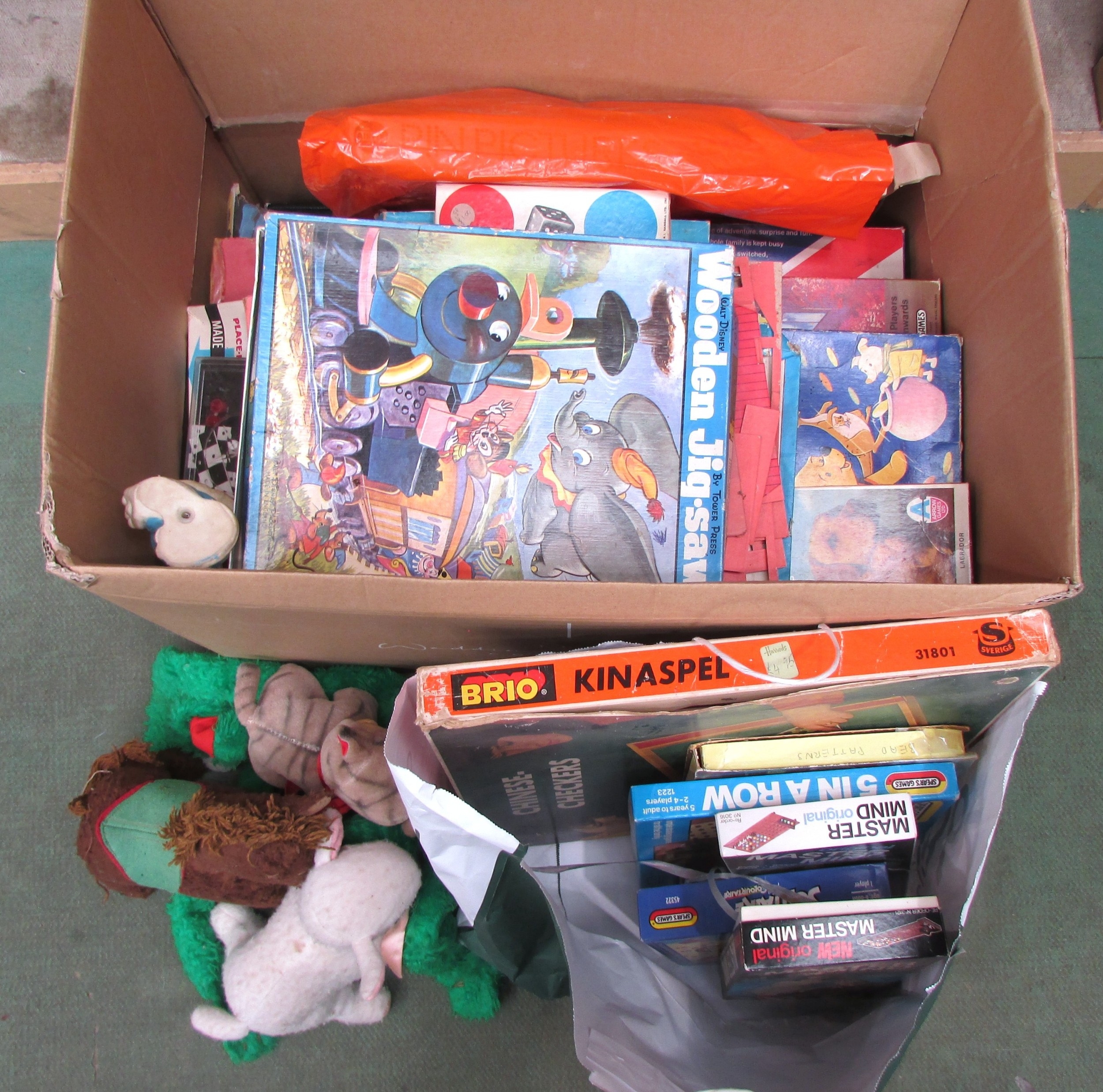 Group of vintage board games and related to include Spears Blow Football, Tom and Jerry Projector, Winnie The Pooh Tiddly Winks, Denys Fisher Haunted House, etc. and some soft toys