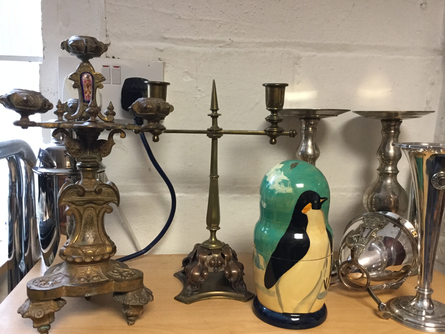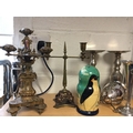 to include plated vase and candlesticks, copper and brass candlestick etc -