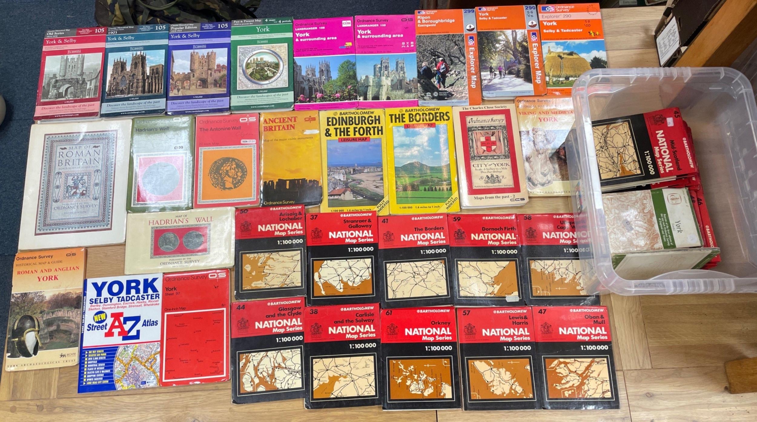 A box of city maps by BARTHOLOMEW & CASSINI including lots of York - modern, Viking and medieval as well as surrounding areas