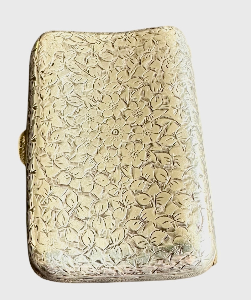 Small Silver Cigarette Case Decorated With Flowers And Leaves And Vacant Shield Cartouche Weight 72g Birmingham 1898 Size 7.5cm x 5cm x 1.7cm
