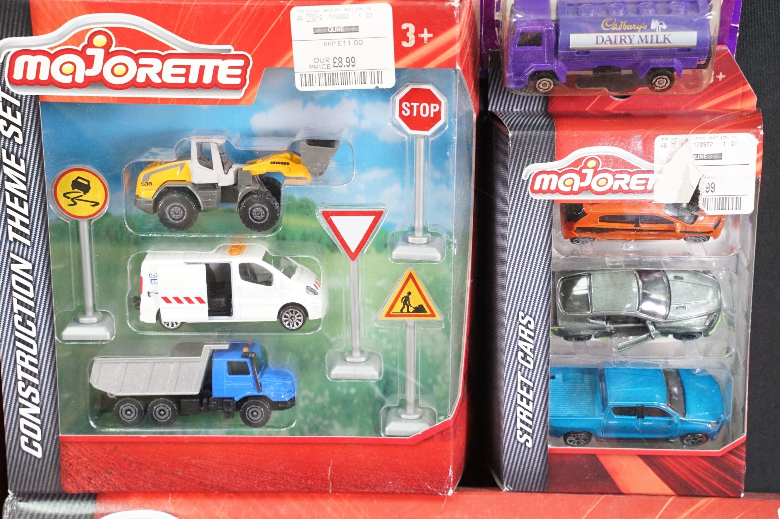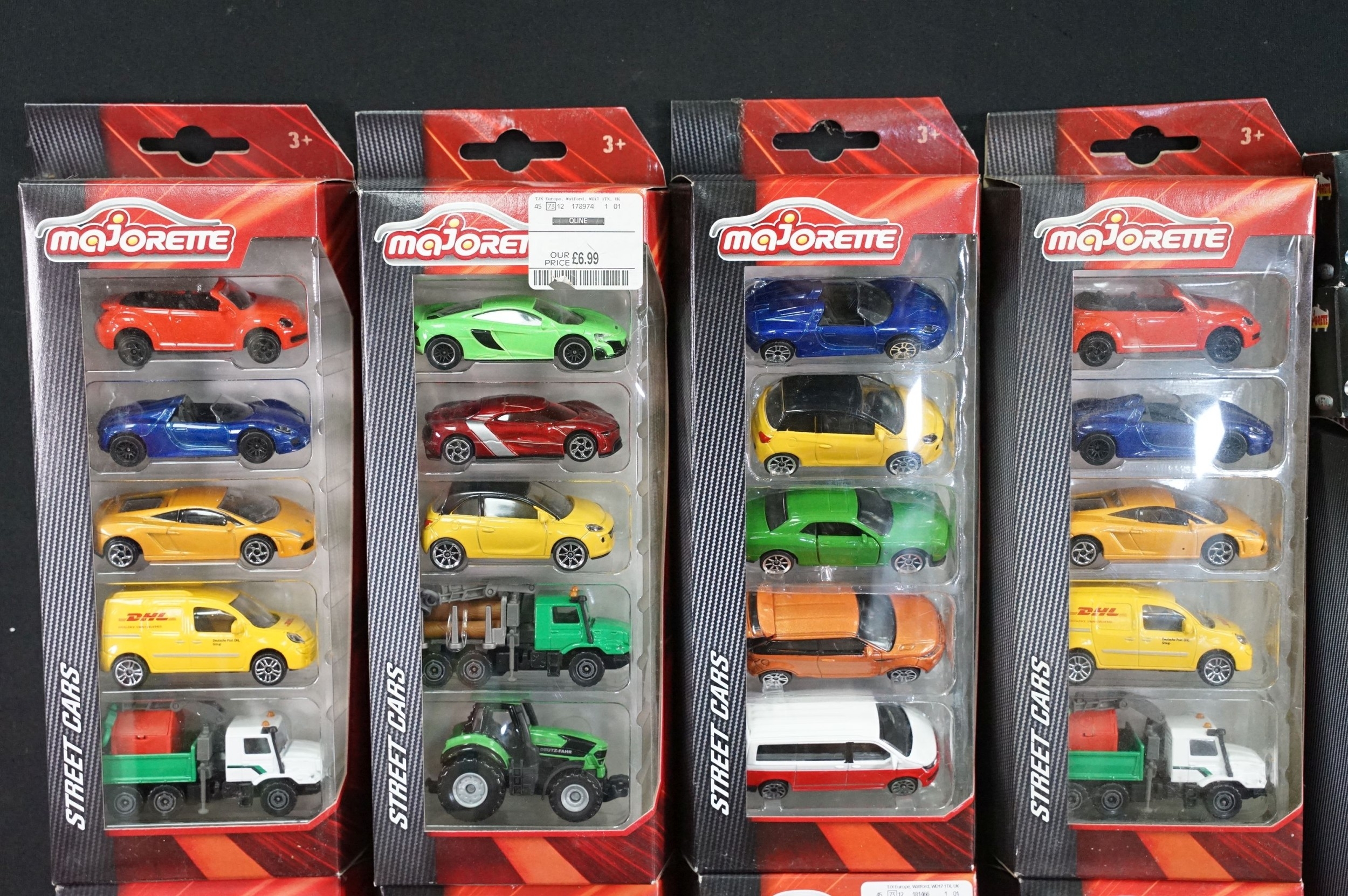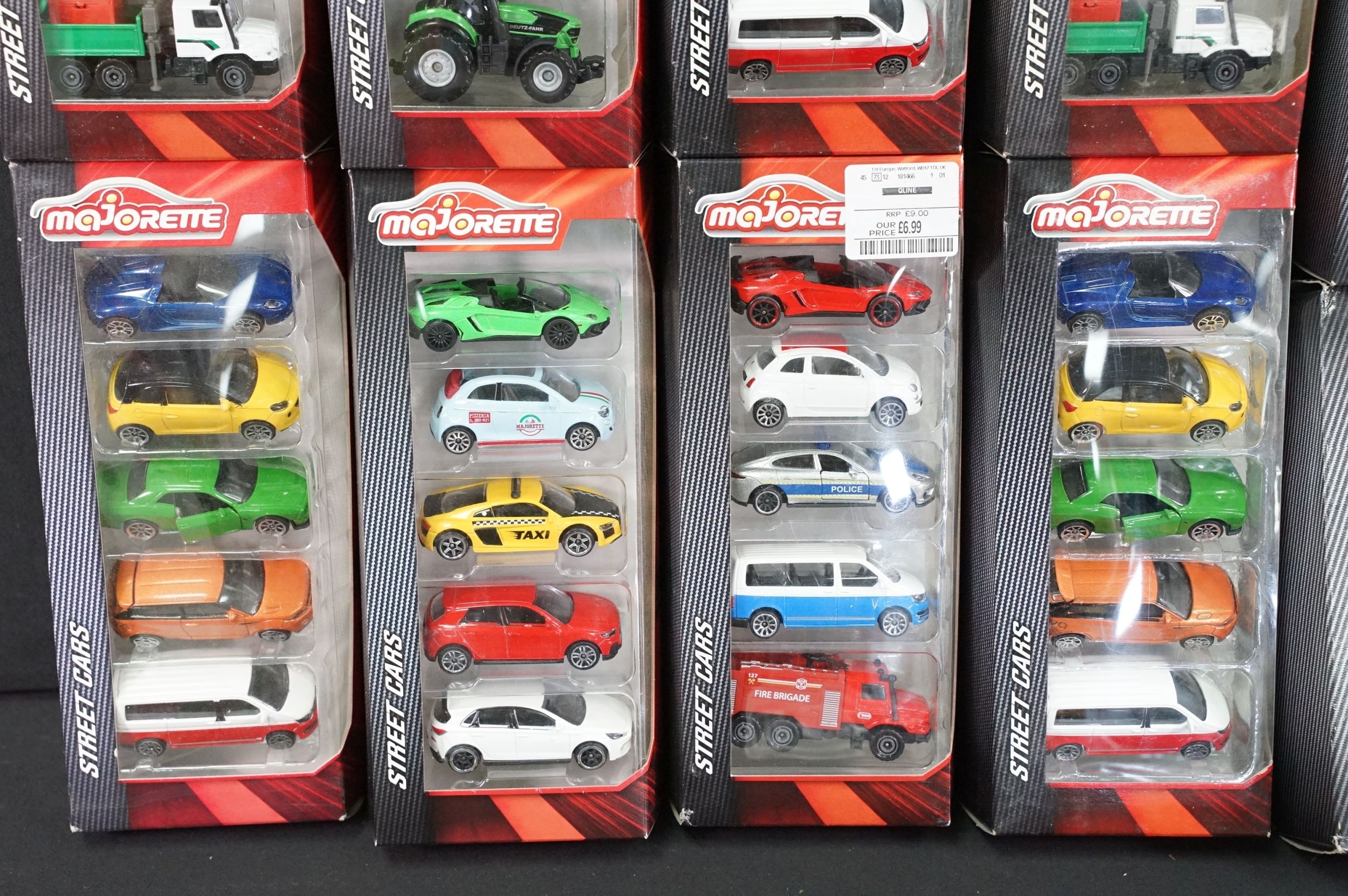 32 Carded / boxed Majorette diecast models featuring various series, include multi model sets, Sonic Flashers, 373 Air France Autocar361 Semi Container Atlas etc, diecast ex, boxes mainly exr