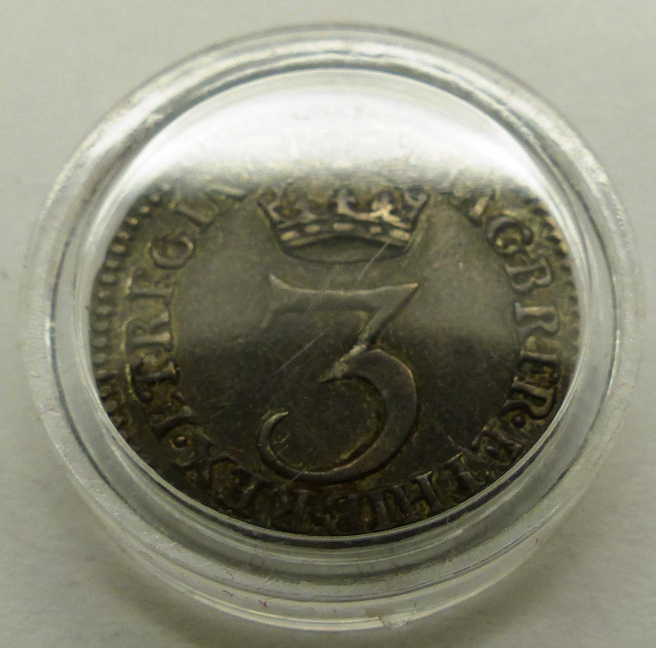 William and Mary silver threepence, high grade. P&P Group 0 (£5+VAT for the first lot and £1+VAT for subsequent lots)