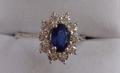 Ladies 9ct White Gold Sapphire & Diamond Cluster Ring, central oval sapphire surrounded by 10 brilliant cut diamonds, size P
