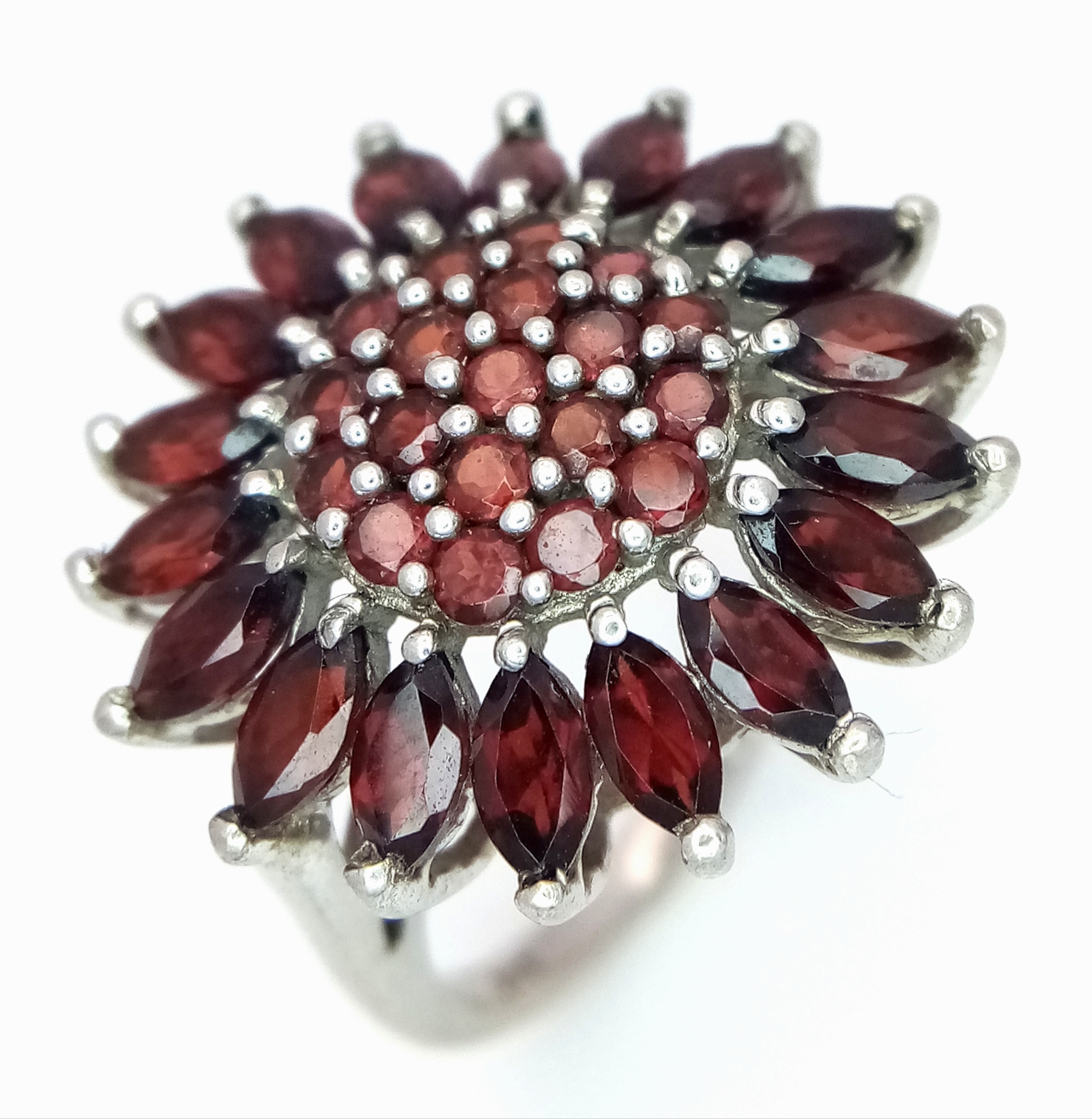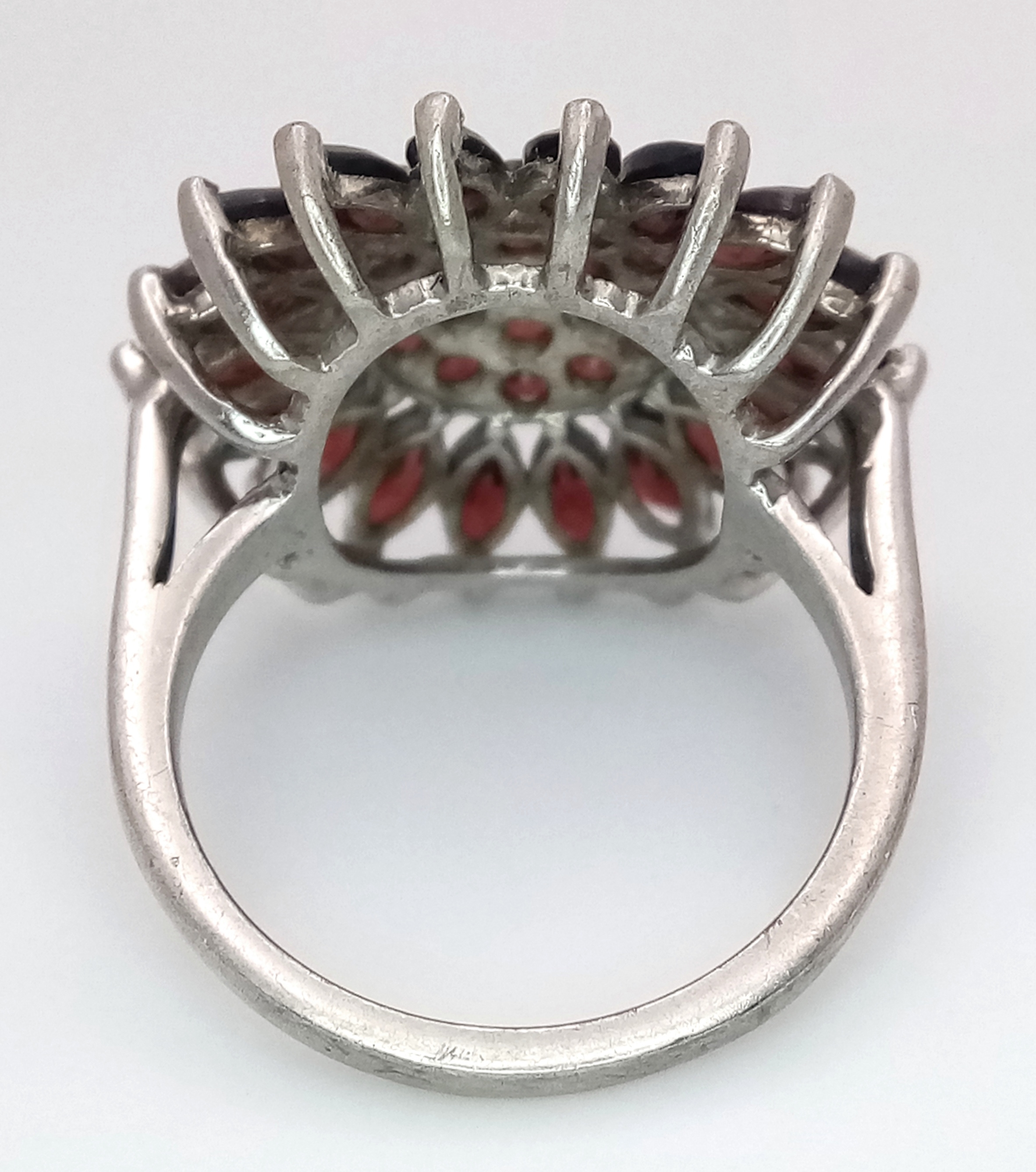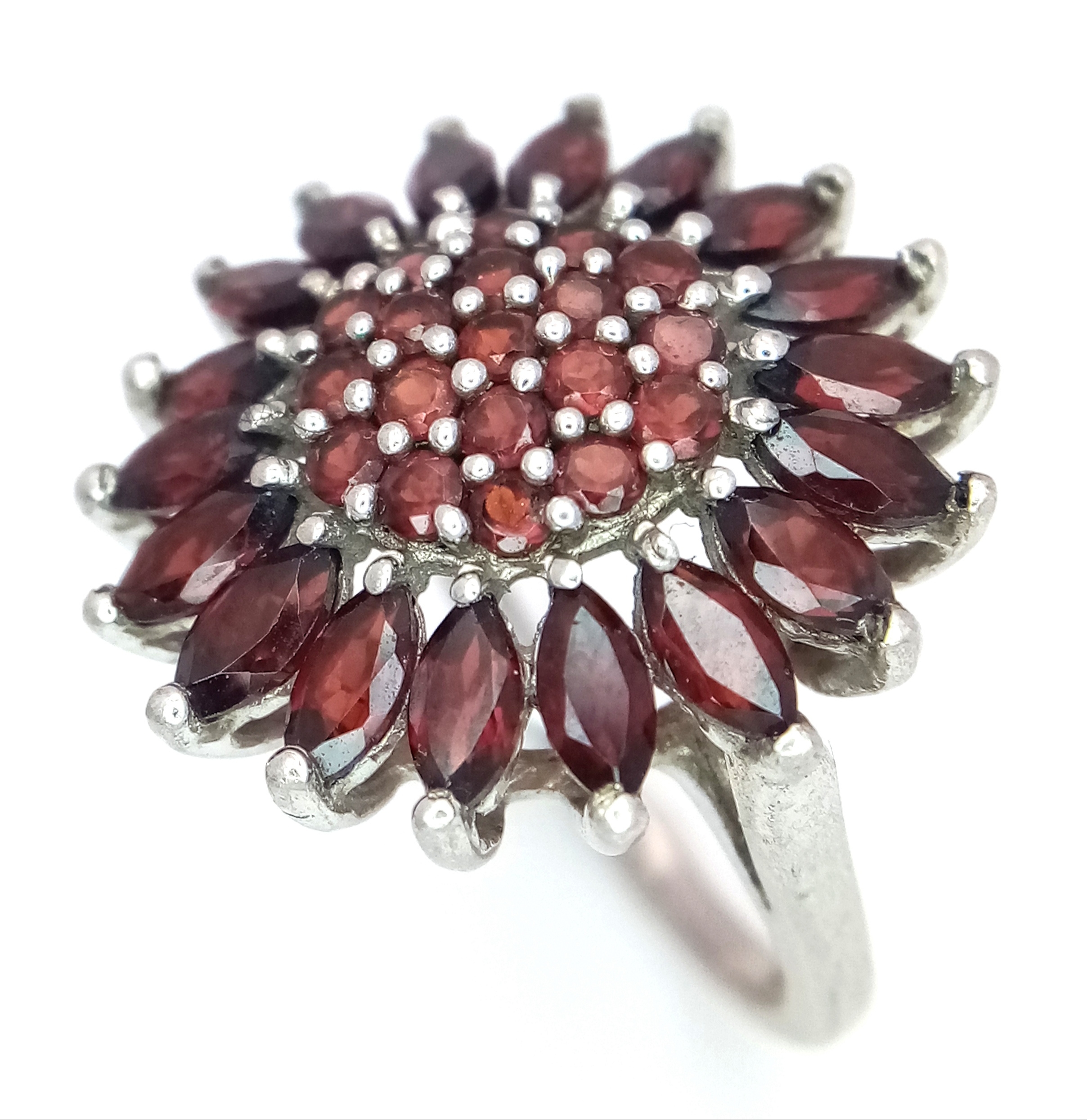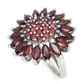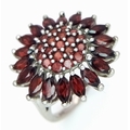 A STERLING SILVER GARNET SET CLUSTER RING. 5.1G. SIZE N. SC6108.