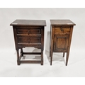 Early 20th century oak pot cupboard with single drawer to the top raised over single door cupboard, 78cm high x 35cm wide x 36cm deep and an oak two-drawer side unit (2)