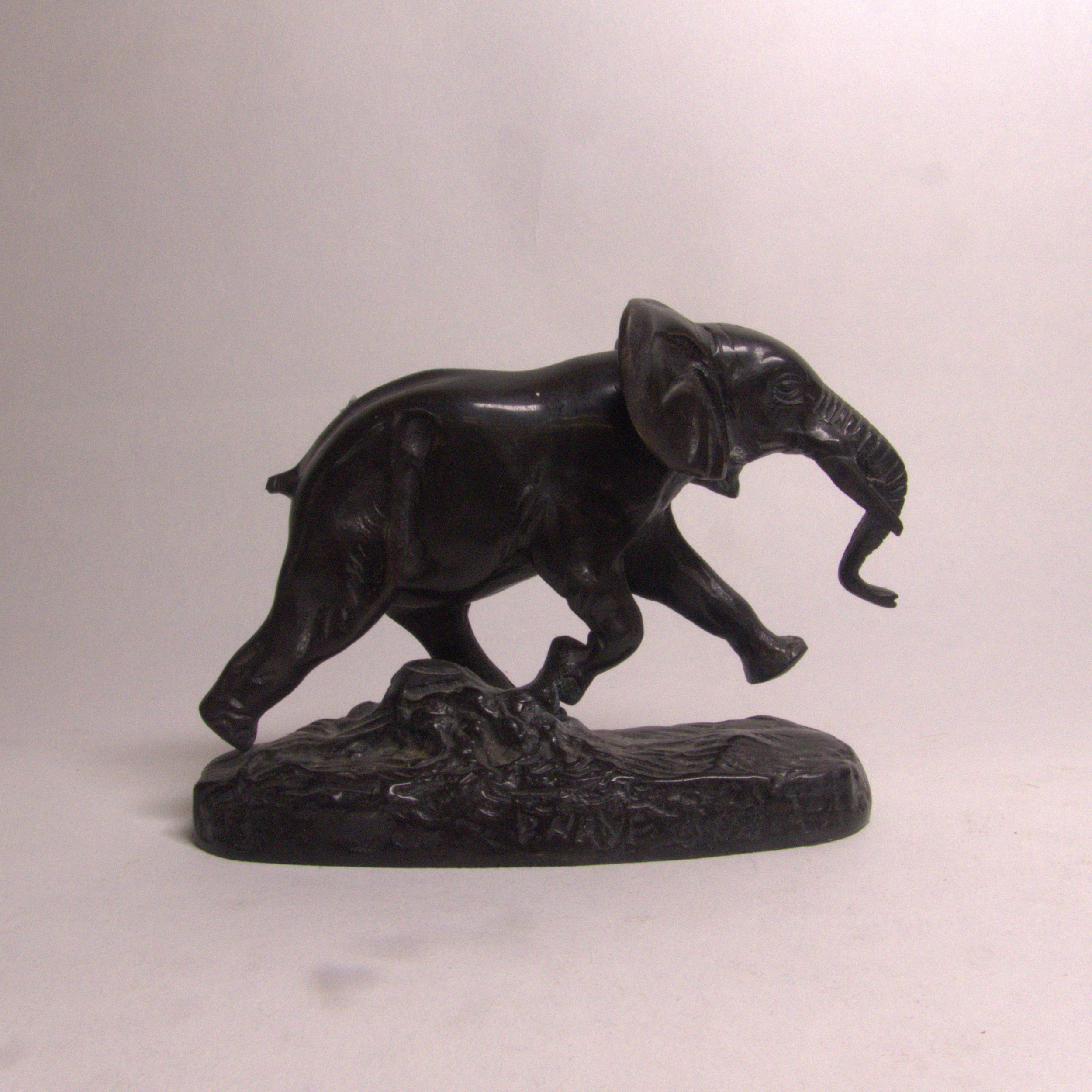 After Antoine-Louis Barye (1795-1875). A bronze model 'Elephant du Senegal', signed, 12.5cm high, tail a/f and absent.