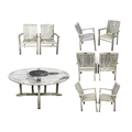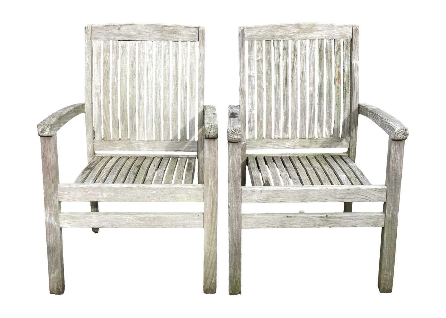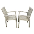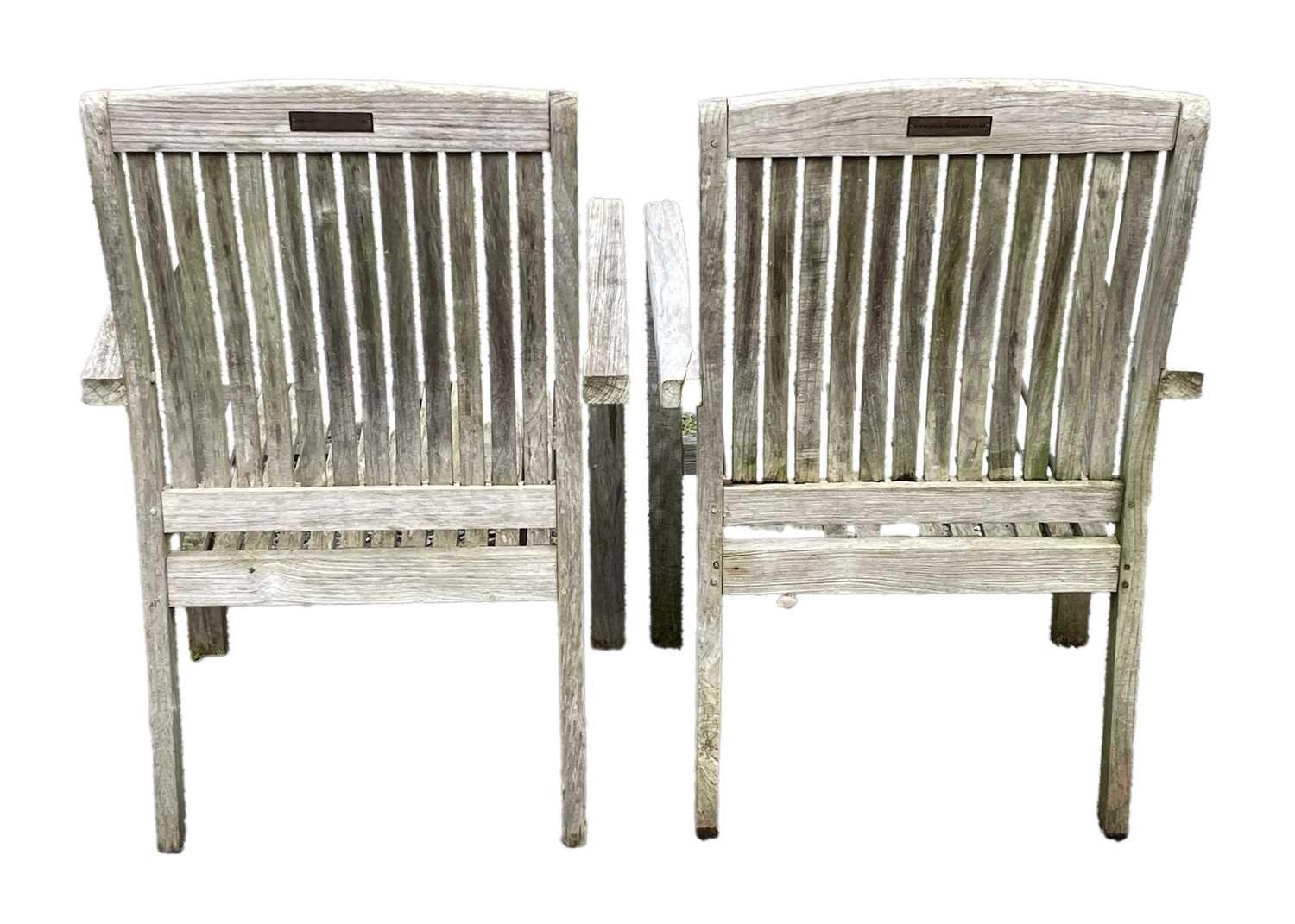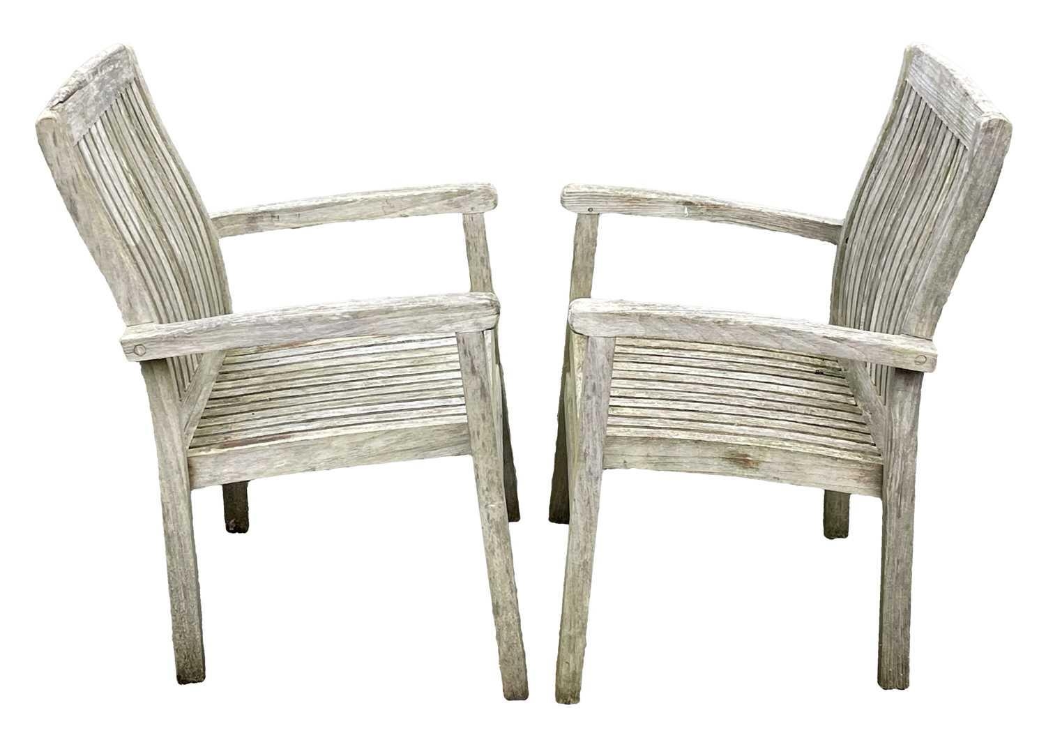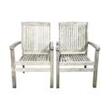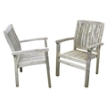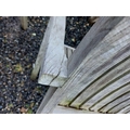 A large circular weathered teak garden table. With polished granite Lazy Susan, diameter of top 180cm, together with eight chairs (9). Chairs and table are sturdy and robust. some age cracks to wood, but no other damage. Additional images now online, thankyou.