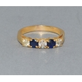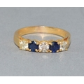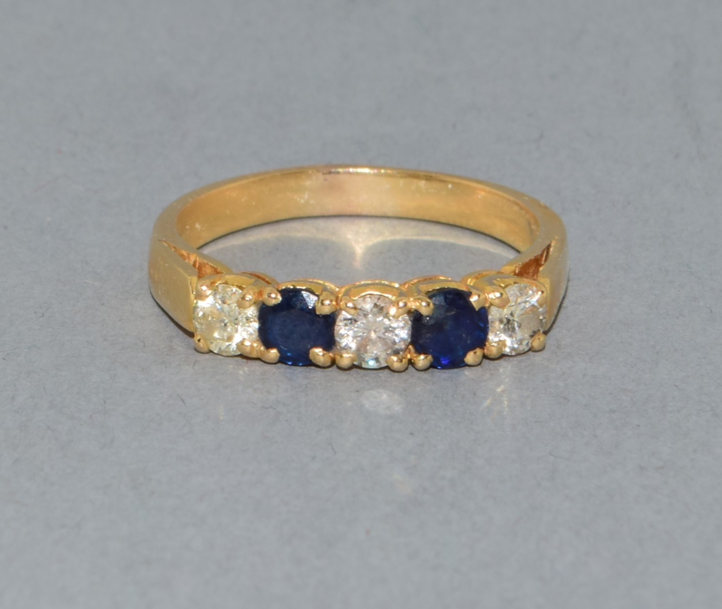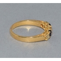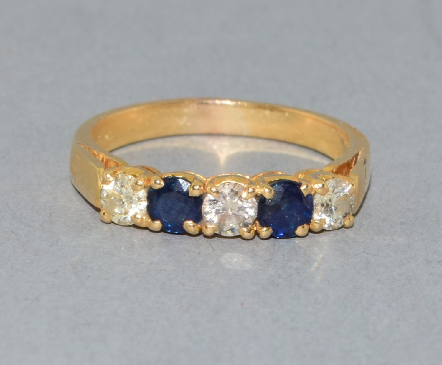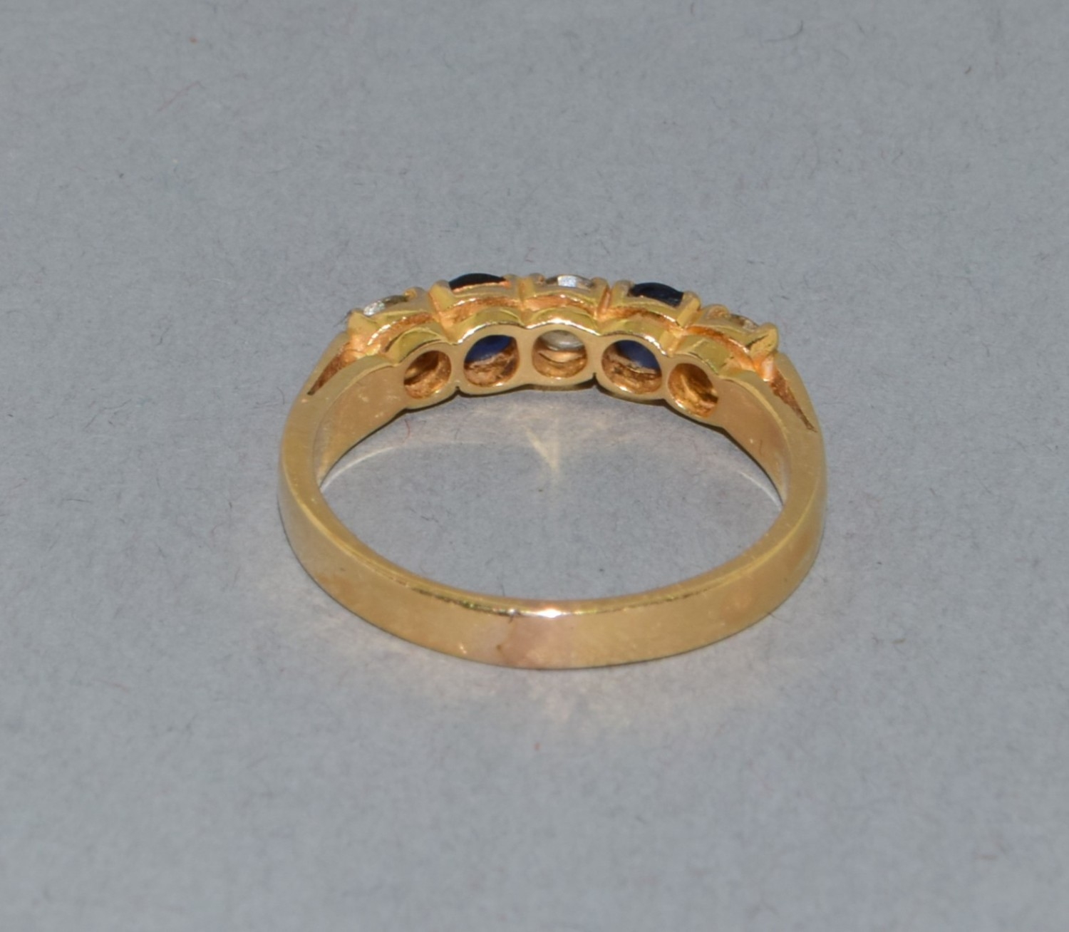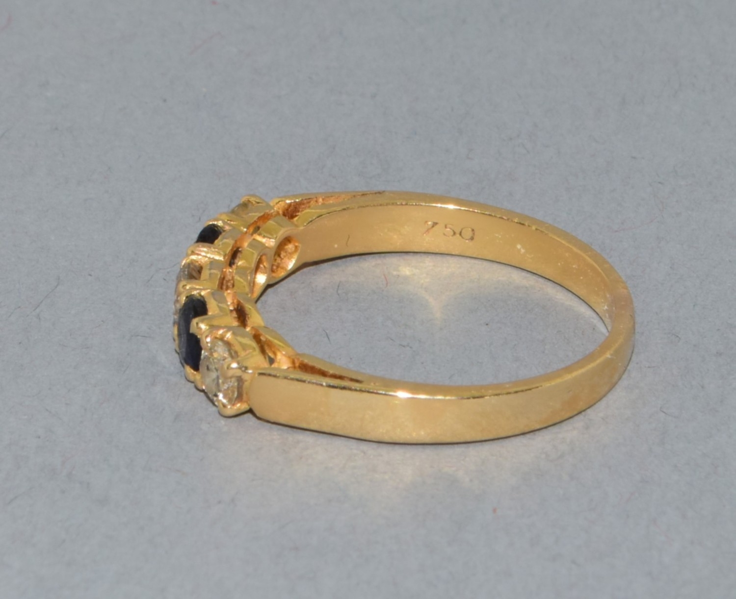 18ct gold ladies vintage Diamond and Sapphire ring held in an enclosed claw setting with approx 45 points of diamonds size P 3.7grams