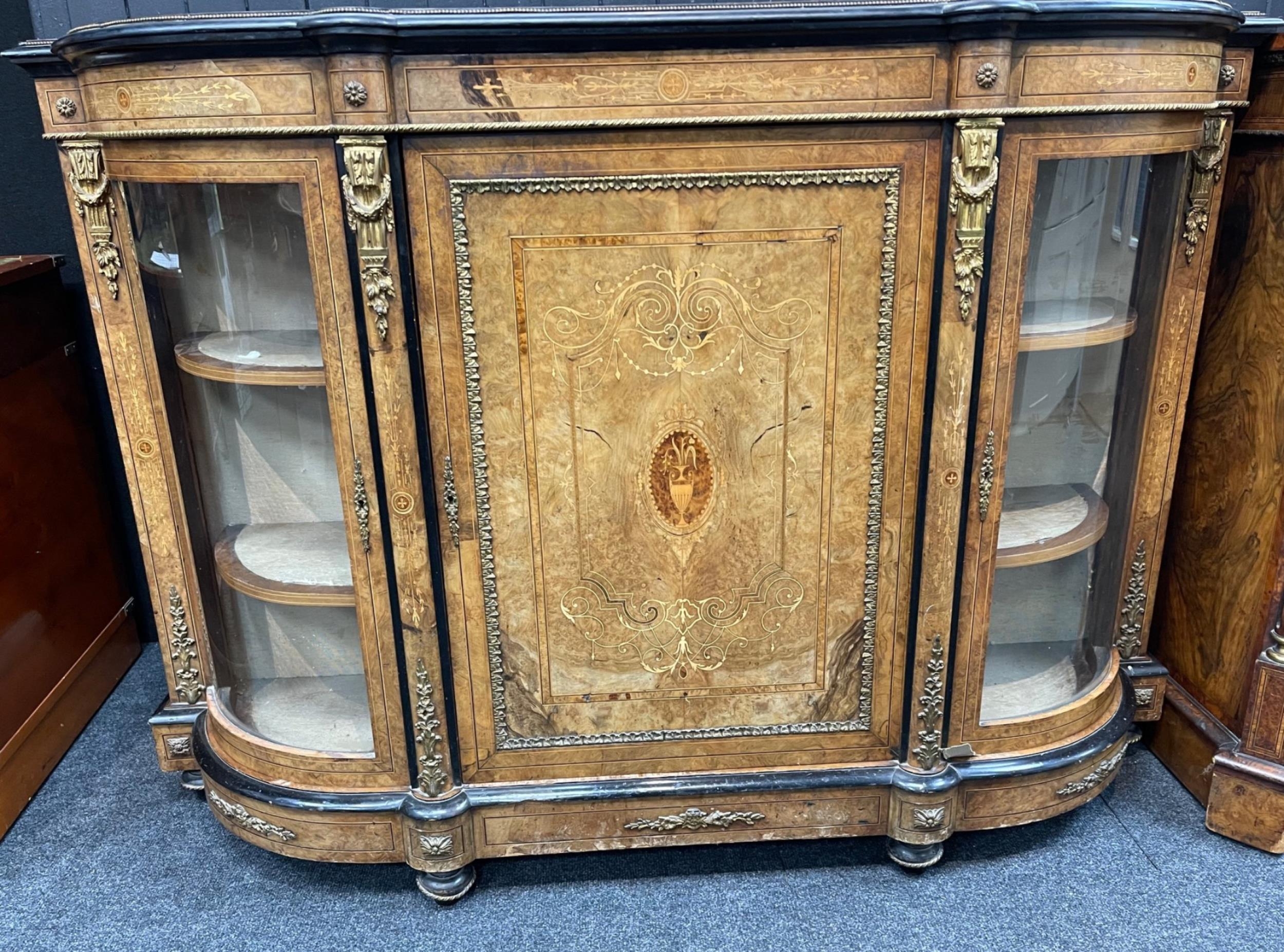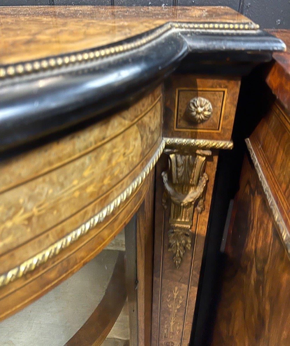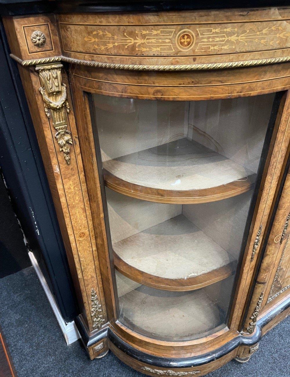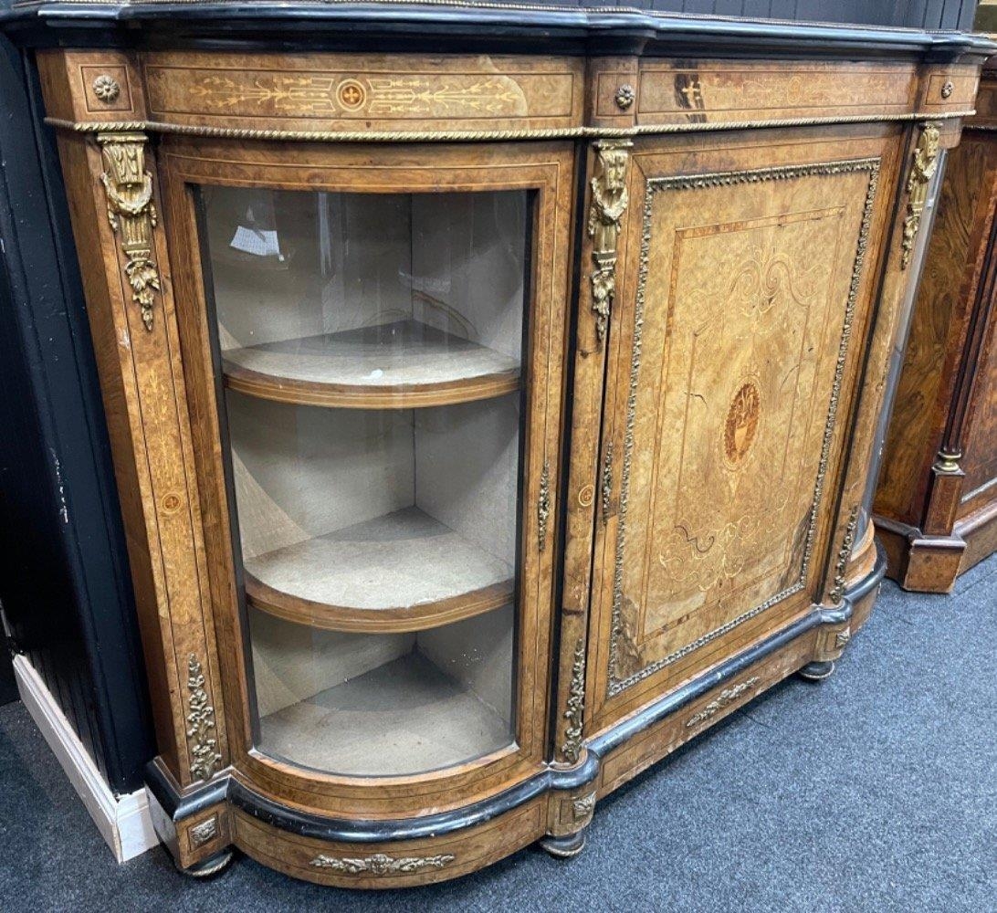 A SUPER QUALITY antique Victorian burr walnut inlaid CREDENZA display cabinet, circa 1870s with dimensions of 60" x 42" height x 16" depth approx