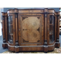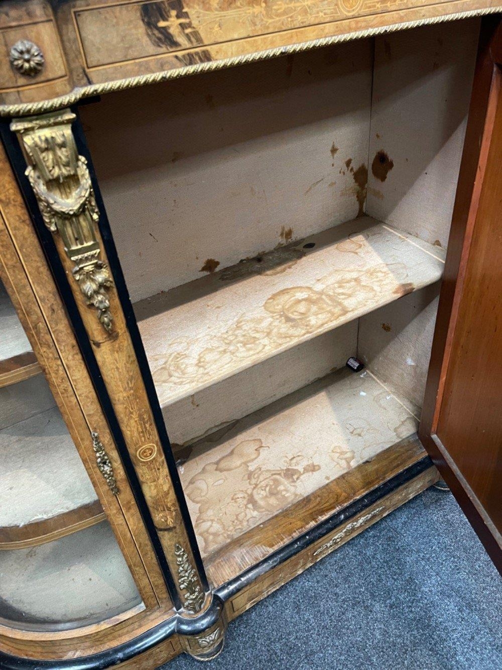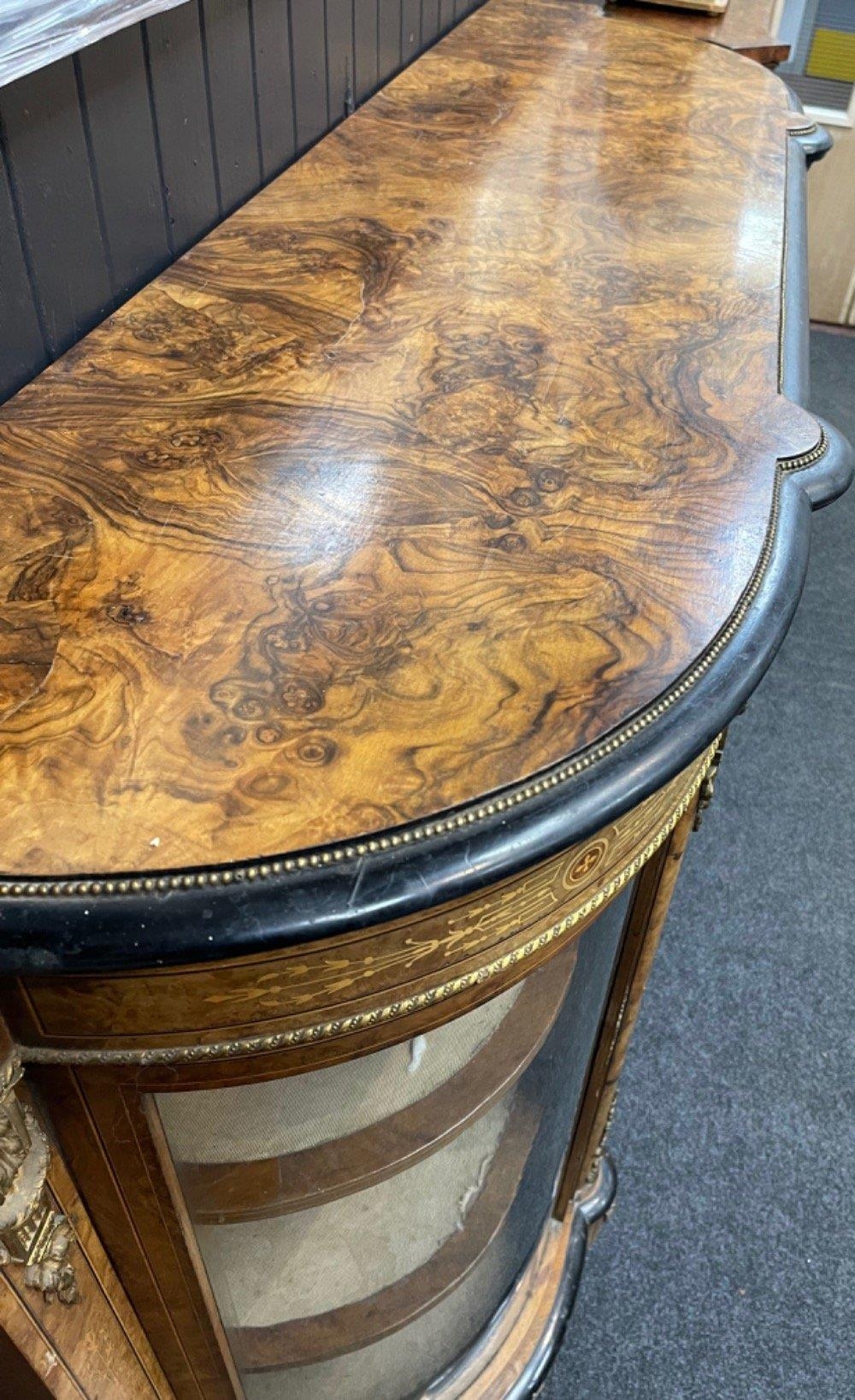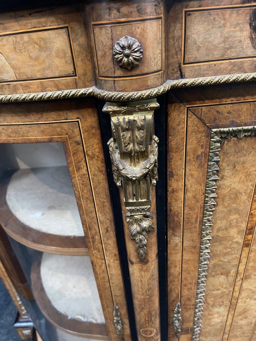 A SUPER QUALITY antique Victorian burr walnut inlaid CREDENZA display cabinet, circa 1870s with dimensions of 60" x 42" height x 16" depth approx