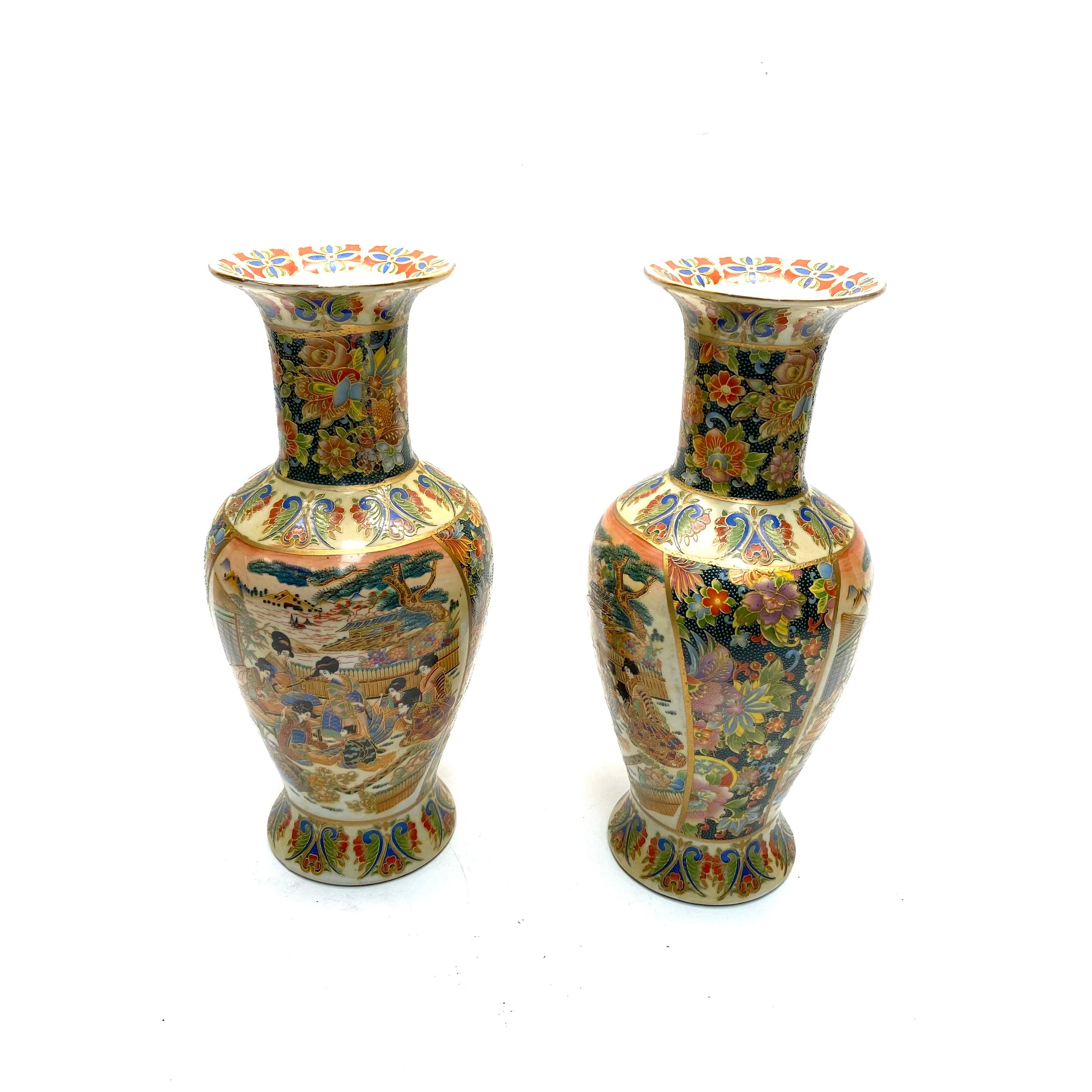 2 japanese amari style satsuma vases 30cm.