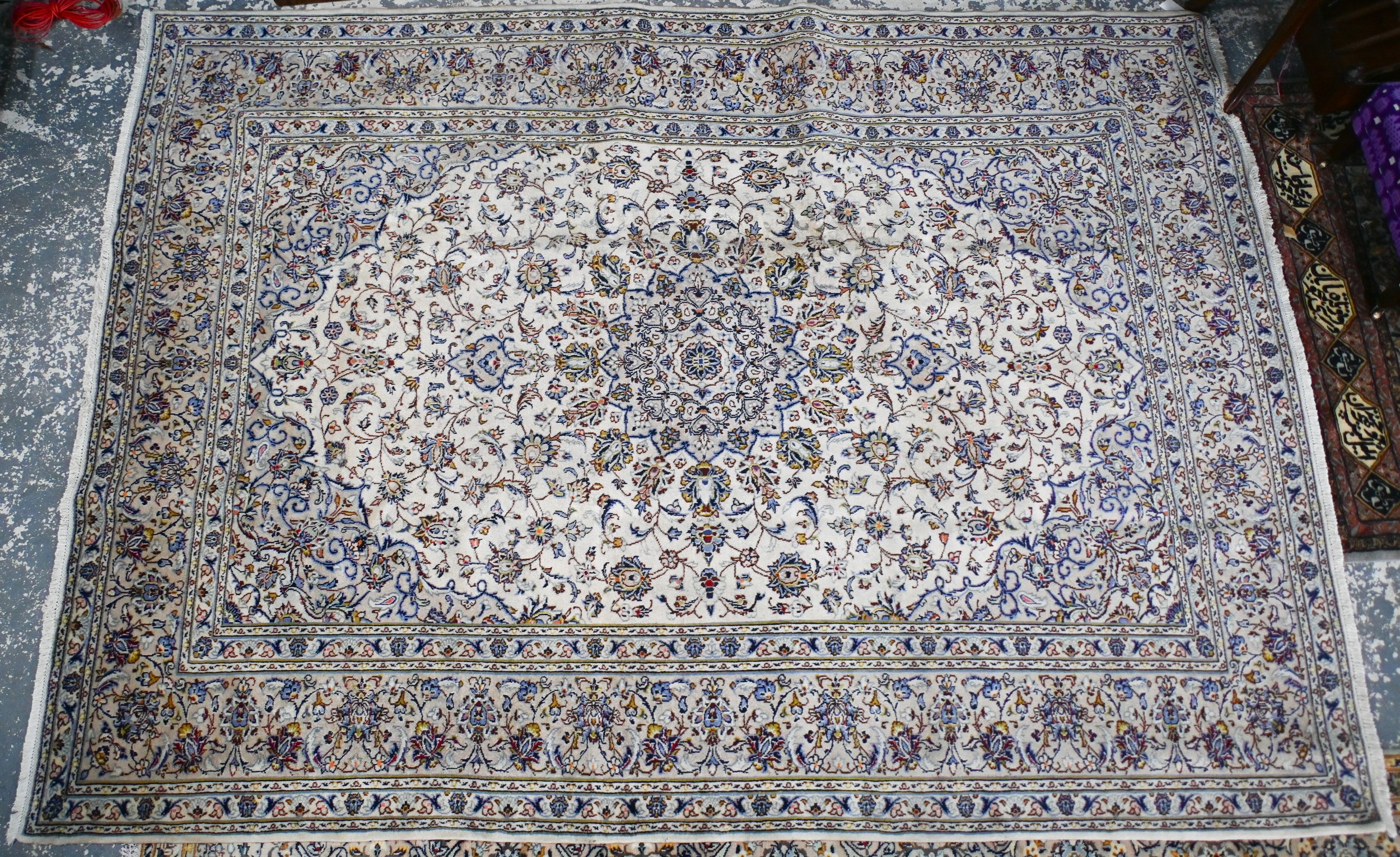 A Central Persian Kashan carpet, cream ground with traditional floral design, 340 x 250 cm