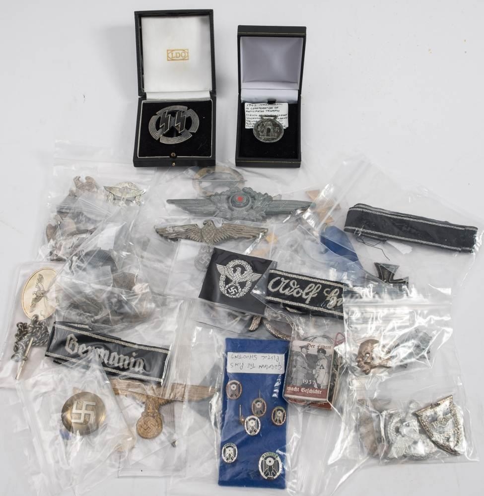 A collection of reproduction German Military badges: including NSDAP badges and others.