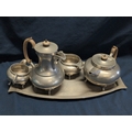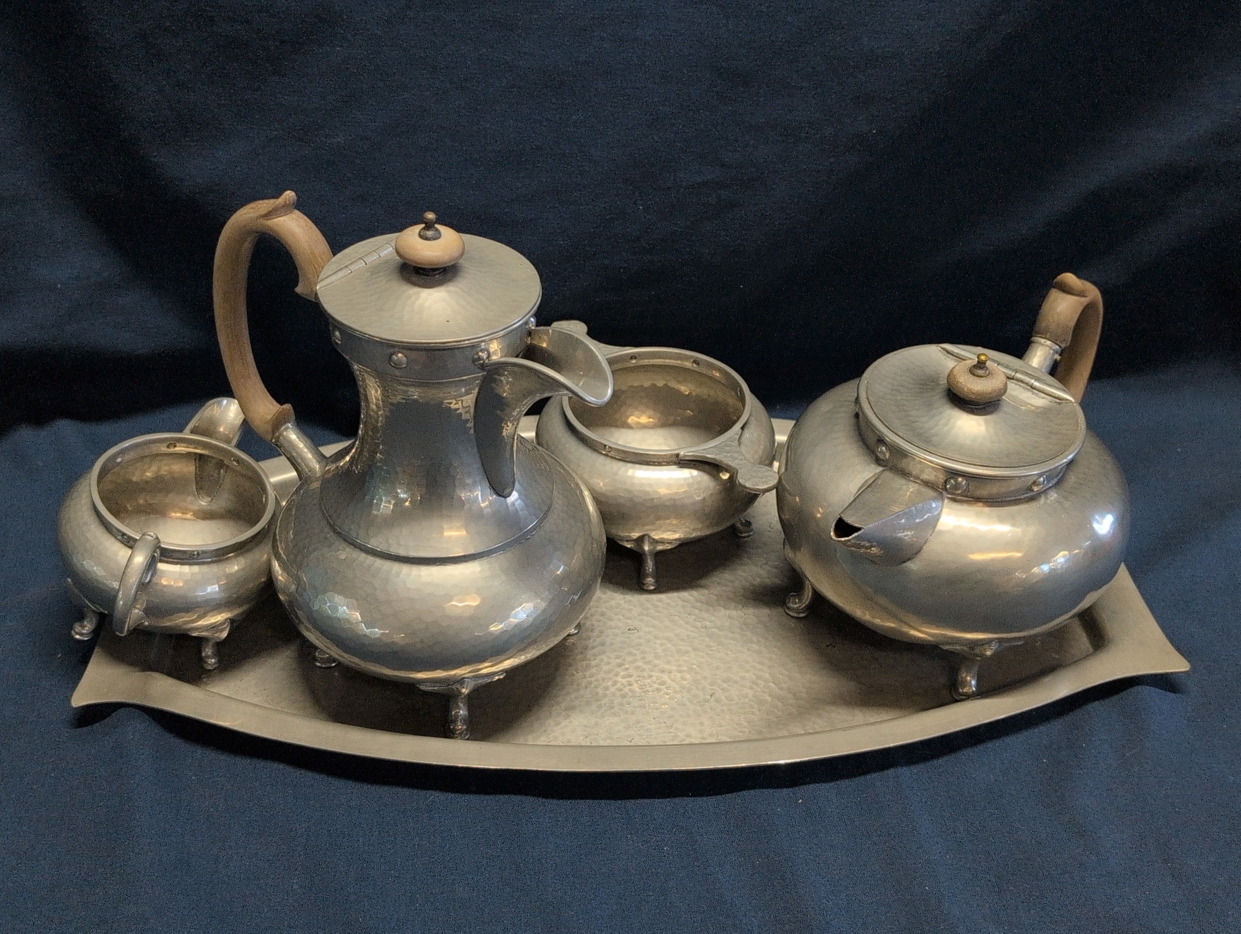 A Don Pewter Five-Piece Coffee and Tea Service with Tray, Shipping Unavailable