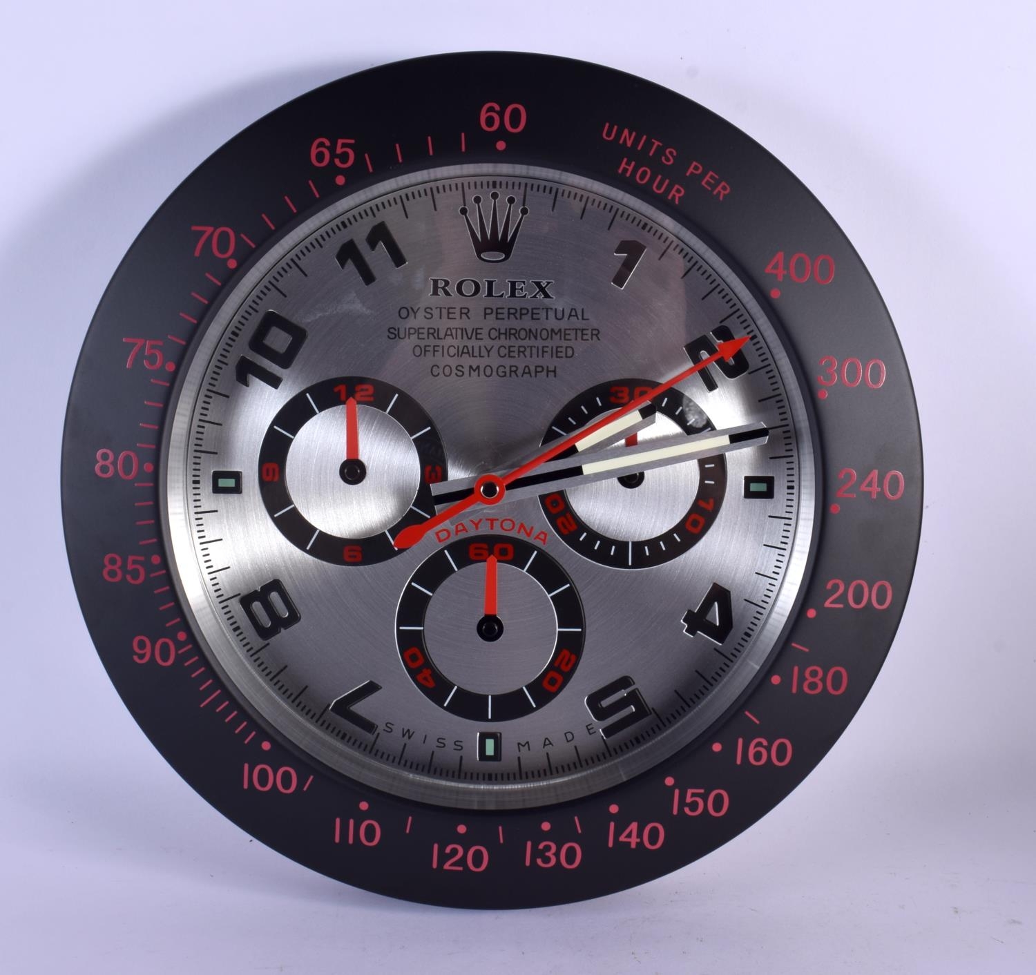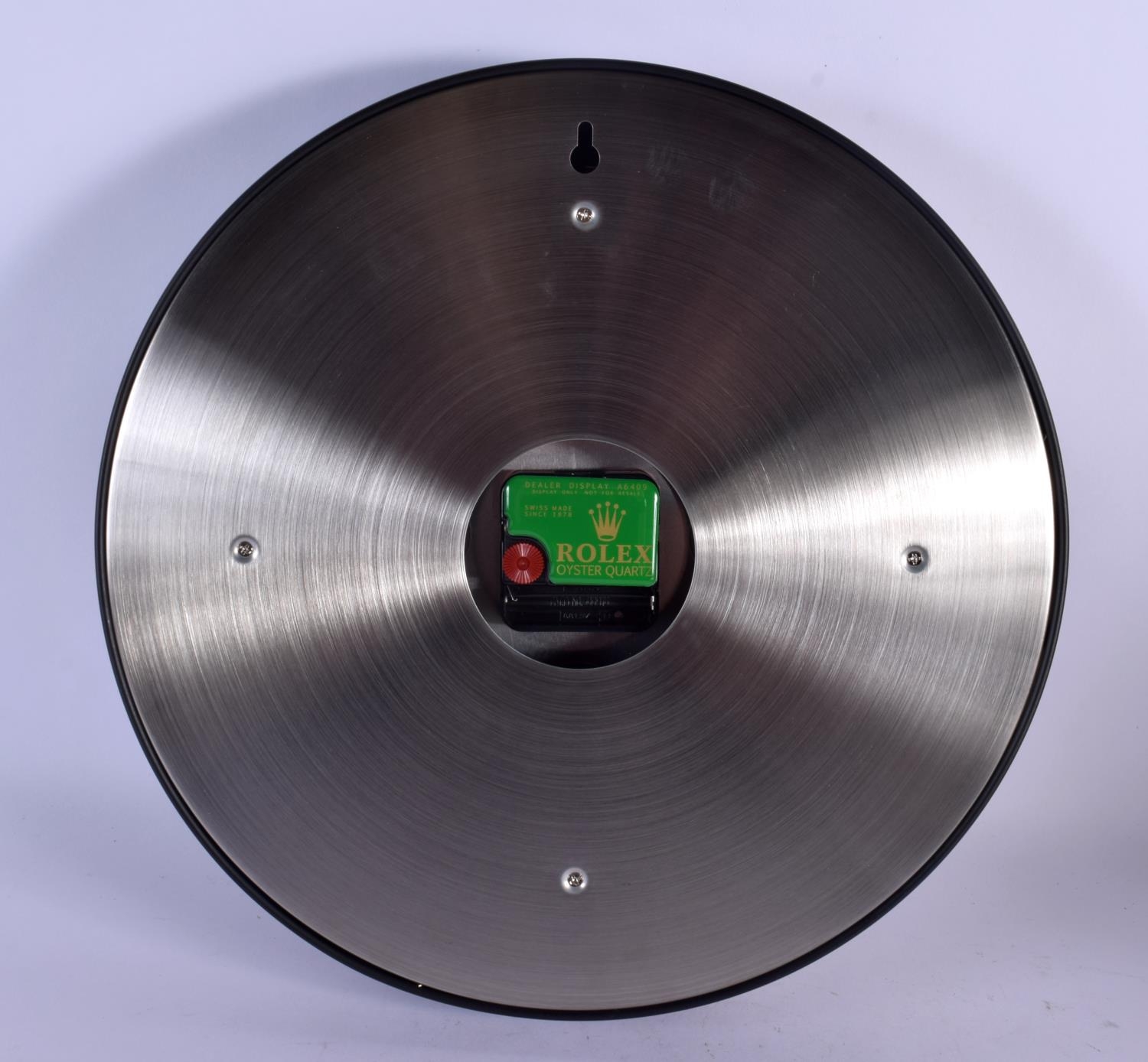A ROLEX SHOP DISPLAY ADVERTISING WALL CLOCK. 33 cm diameter.