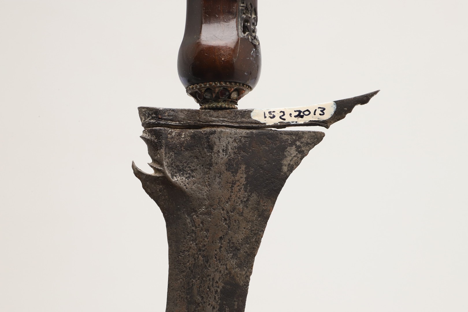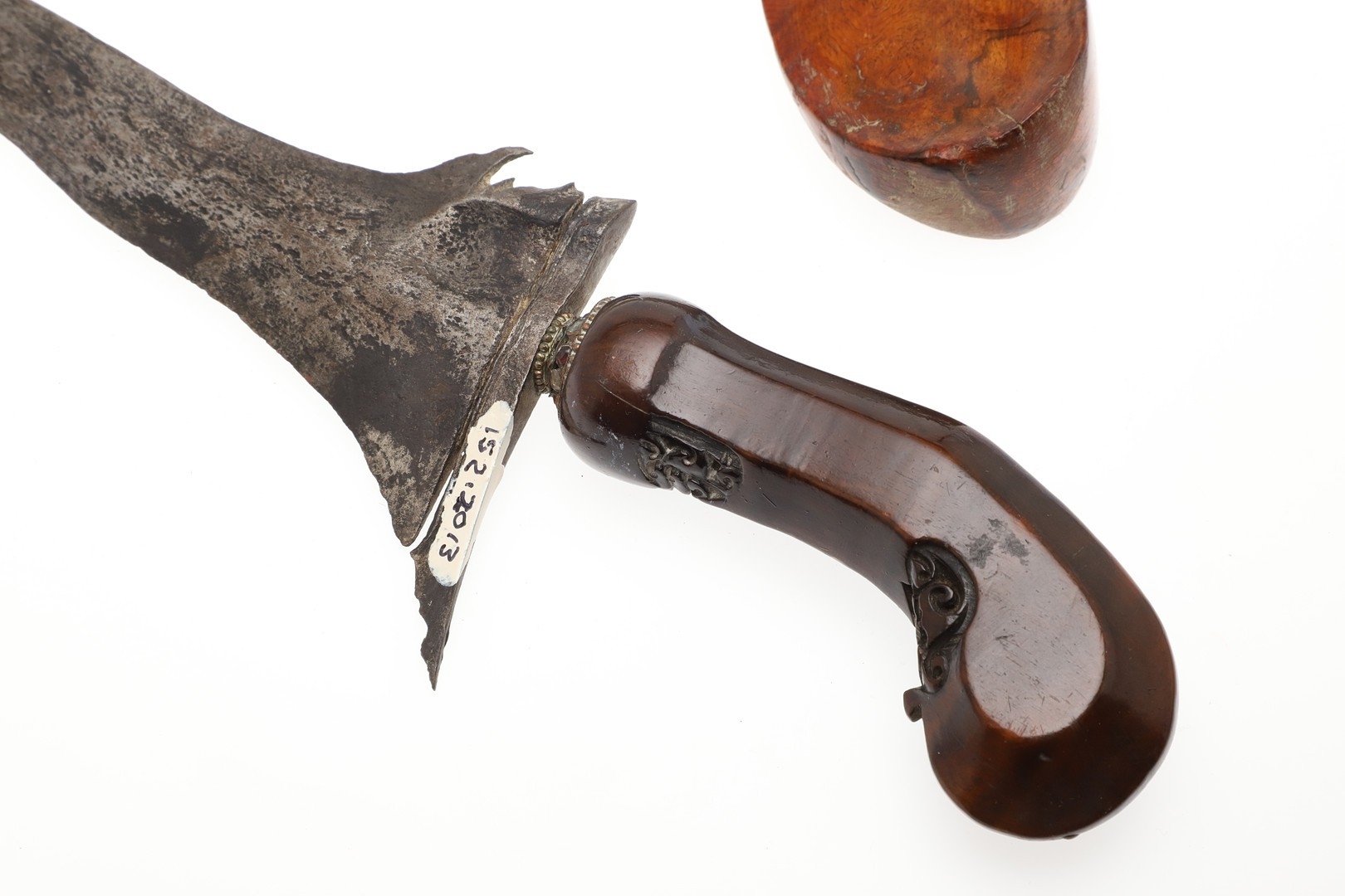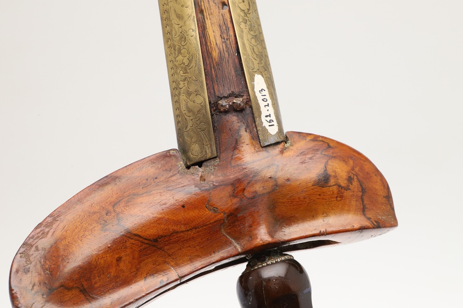 Cracks in timber, some light marking. Collection number in two places.