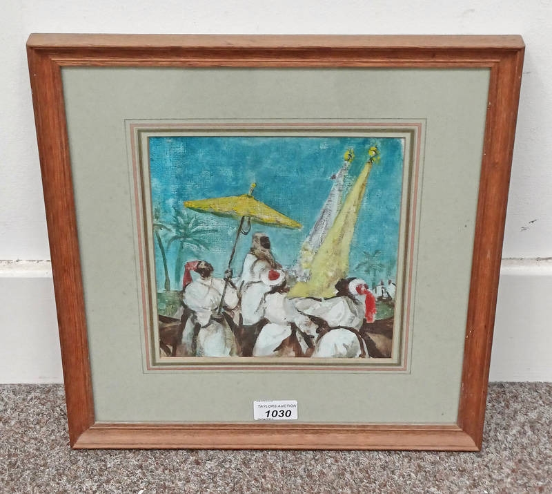 VILLIERS DAVID - (ARR), THE SULTAN OF MOROCCO GOING TO PRAYER, LABEL TO REVERSE, FRAMED OIL PAINTING 21 X 20 CM