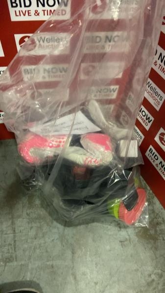 BAG OF ASSORTED SPORTING EQUIPMENT INCL. WEIGHTS