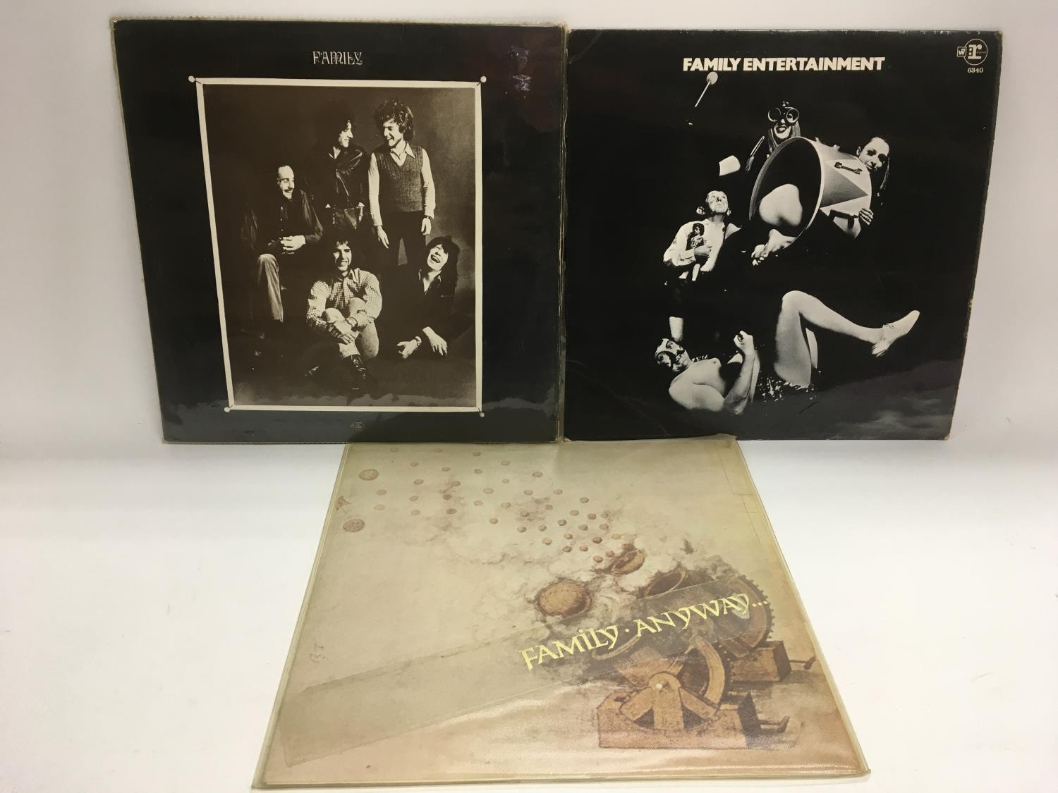 Three LPs by Family comprising 'Anyway', 'A Song For Me' and 'Entertainment', all early pressings.
