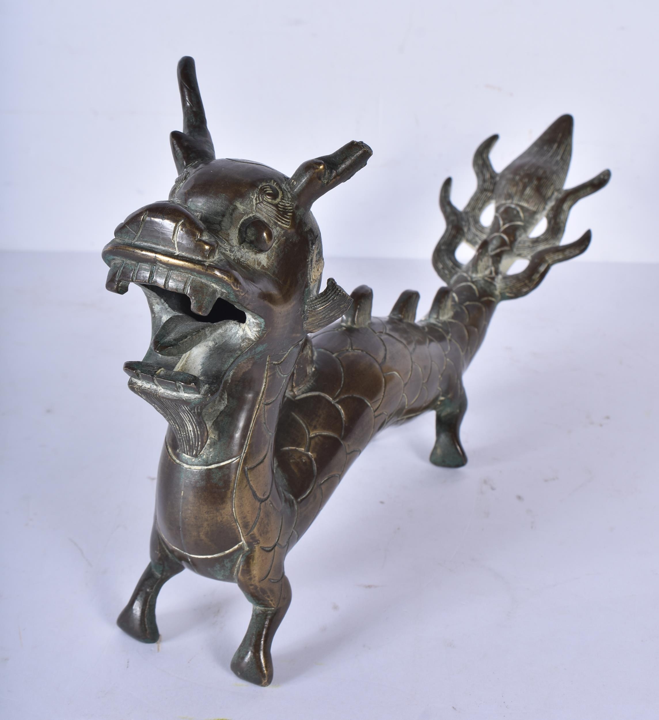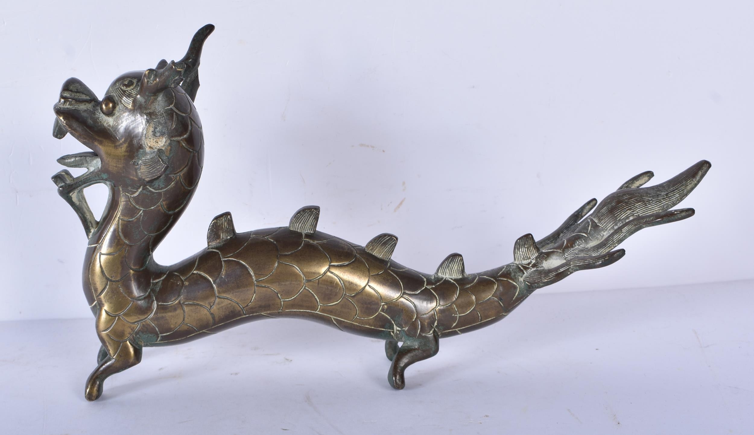 A Chinese bronze dragon 16 x 31cm
