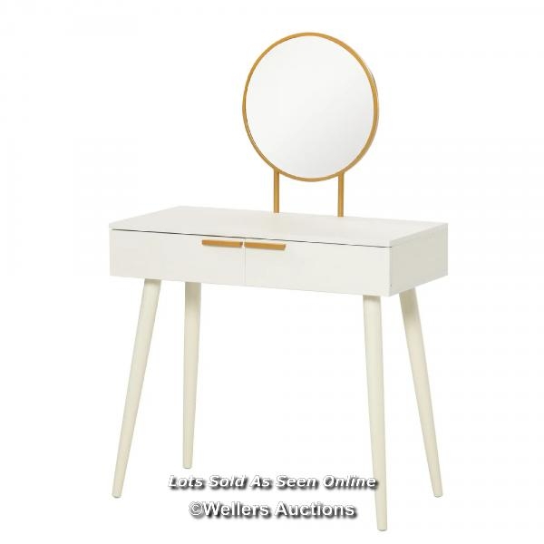 RRP: 99.99 - MODERN DRESSING TABLE WITH ROUND MIRROR, MAKEUP VANITY TABLE WITH 2 DRAWERS FOR BEDROOM, LIVING ROOM, WHITE / BOXED / NOT FULLY CHECKED / SEE IMAGES