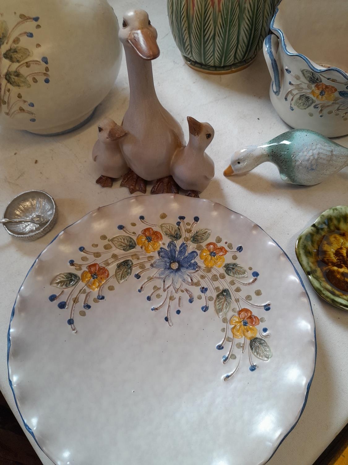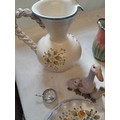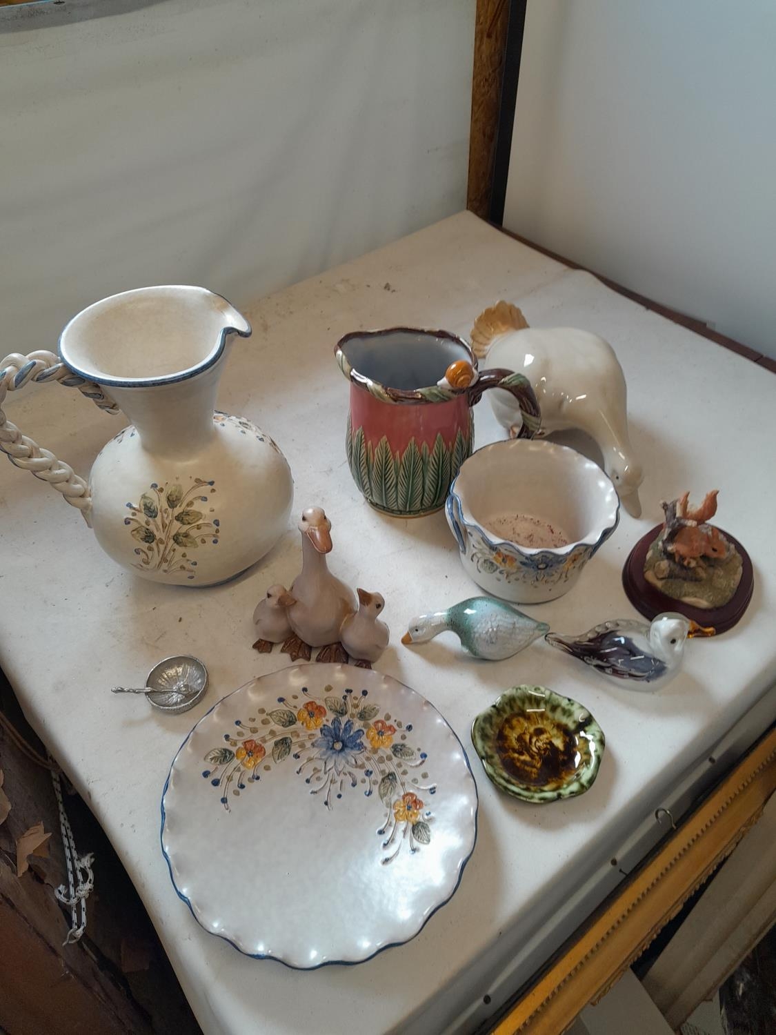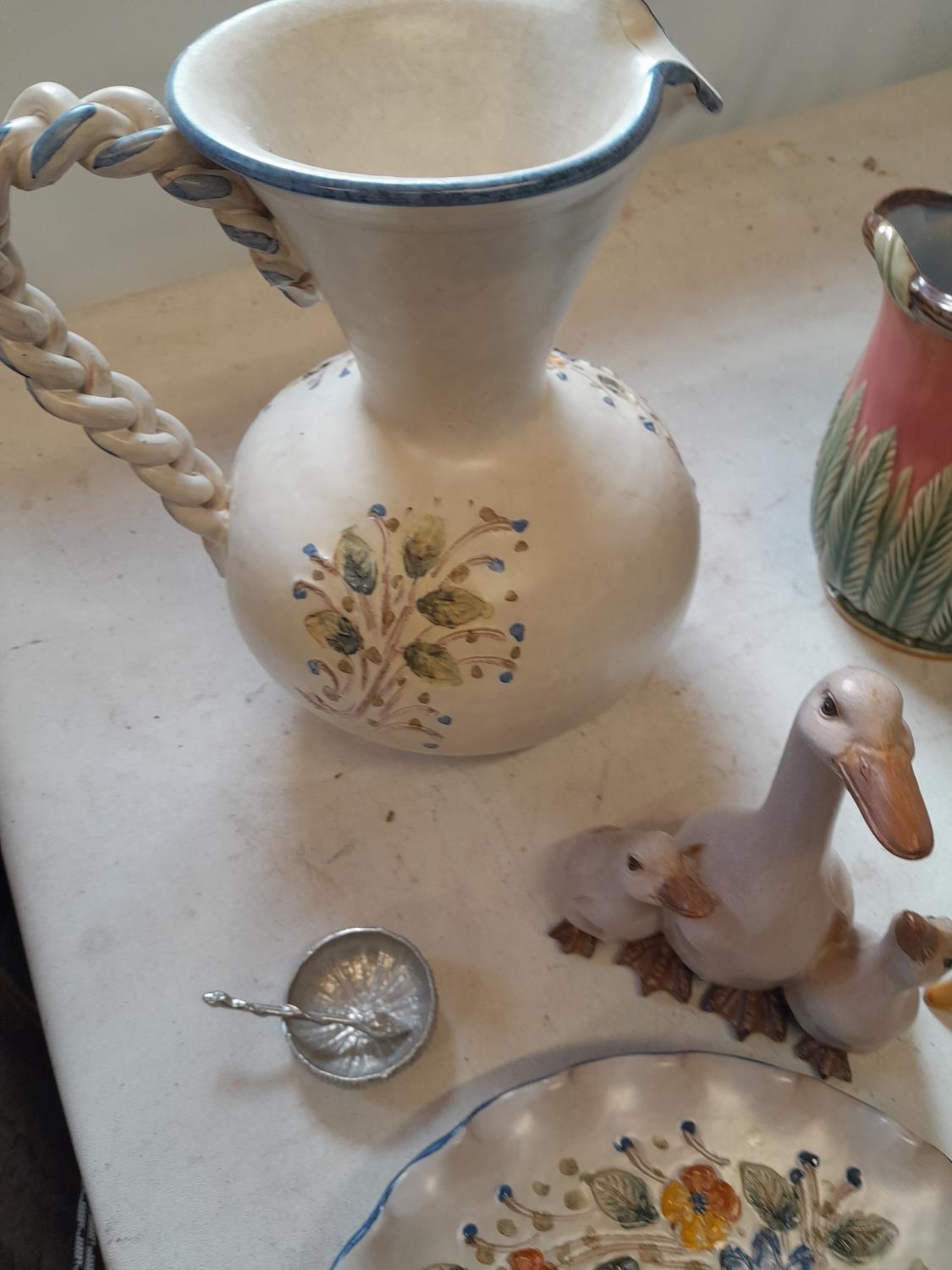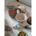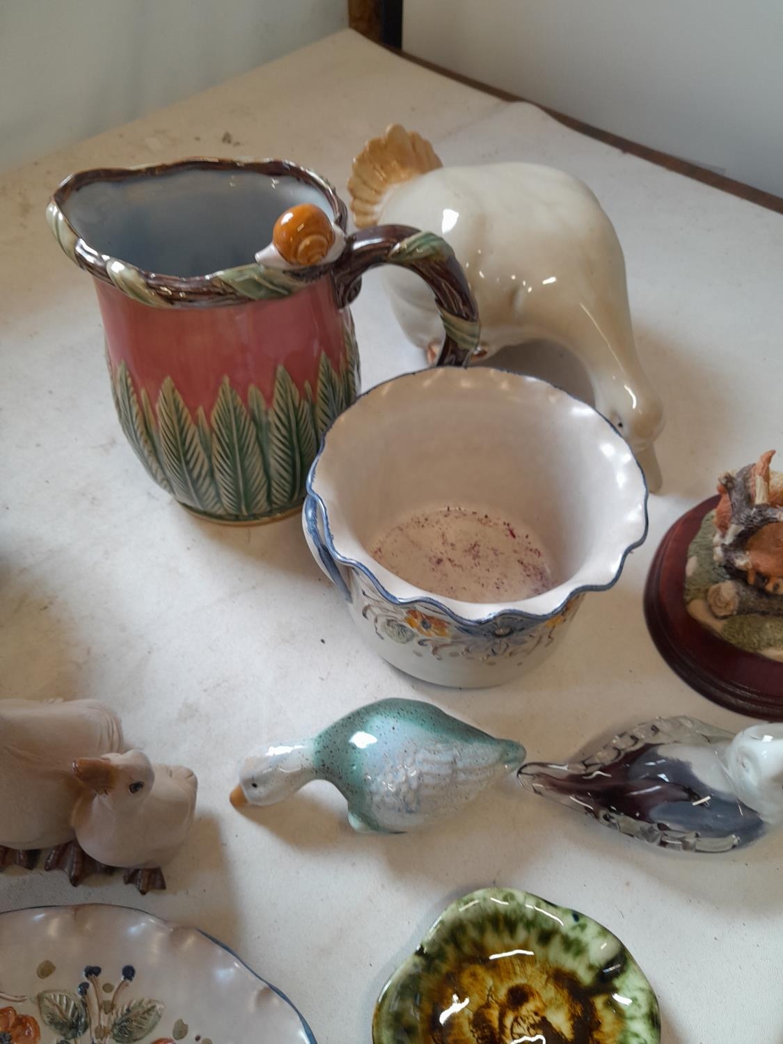 Decorative china : modern majolica jug, glass paperweight etc