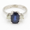 14ct gold sapphire & diamond trilogy ring (3.4g) Size N