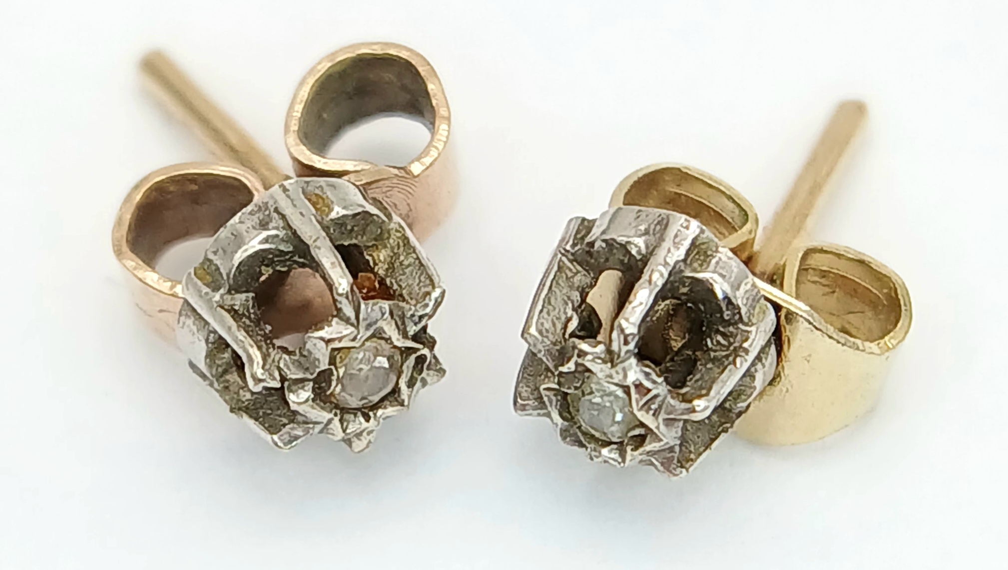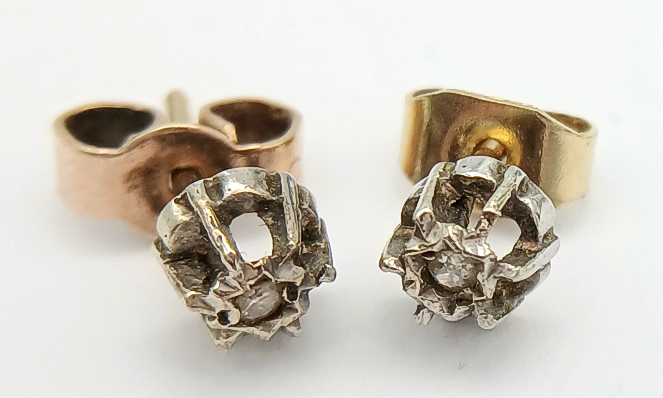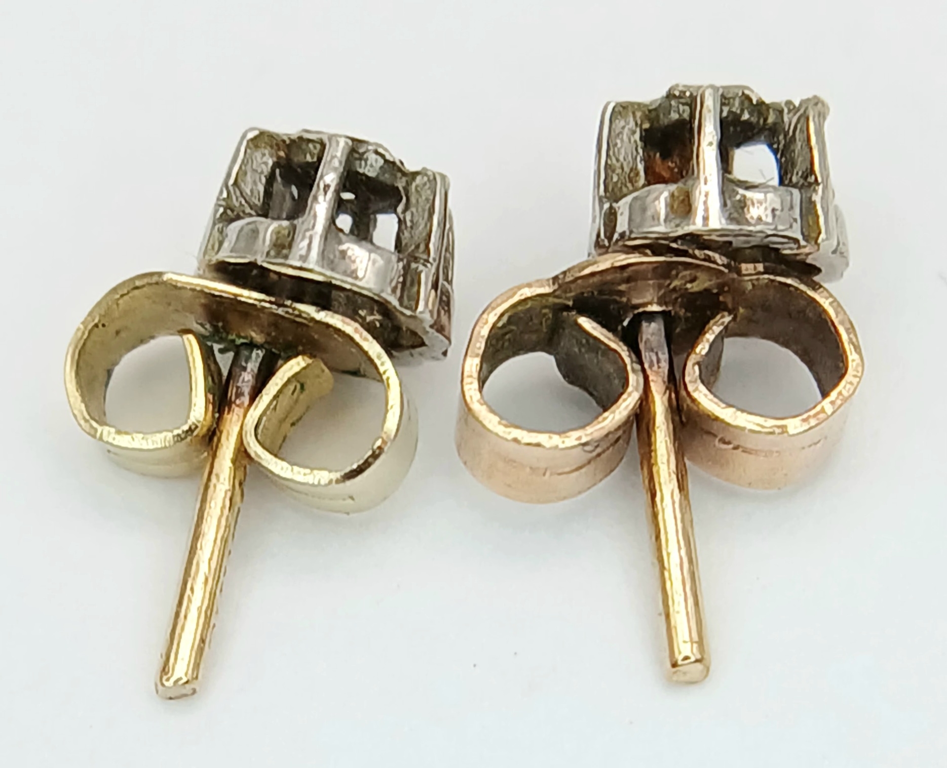 Pair of 9 CARAT GOLD, DIAMOND STUD EARRINGS . Complete With Gold Backs. 0.67 Grams.