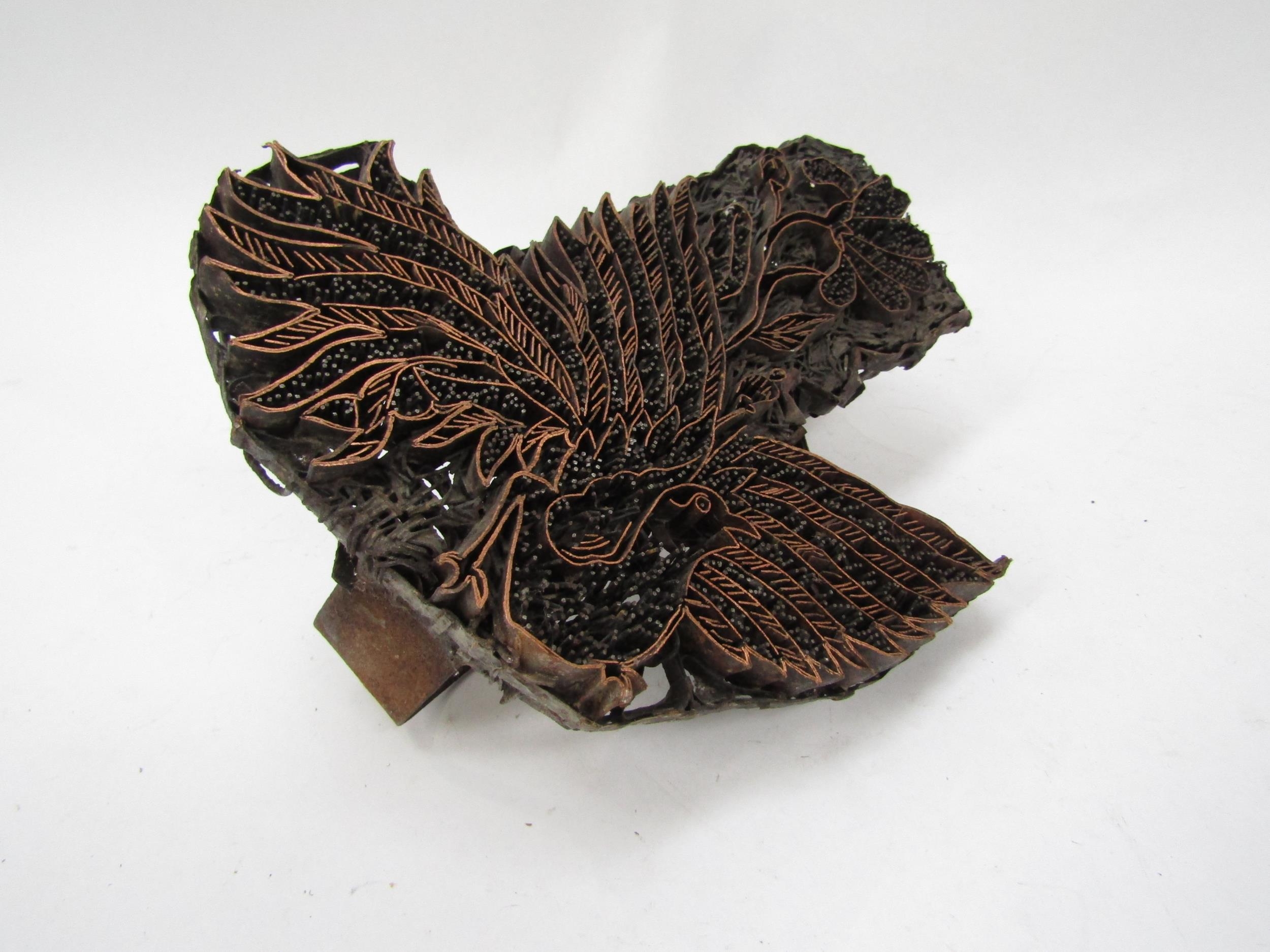 A metal fabric stamp of bird design, 19cm x 16cm