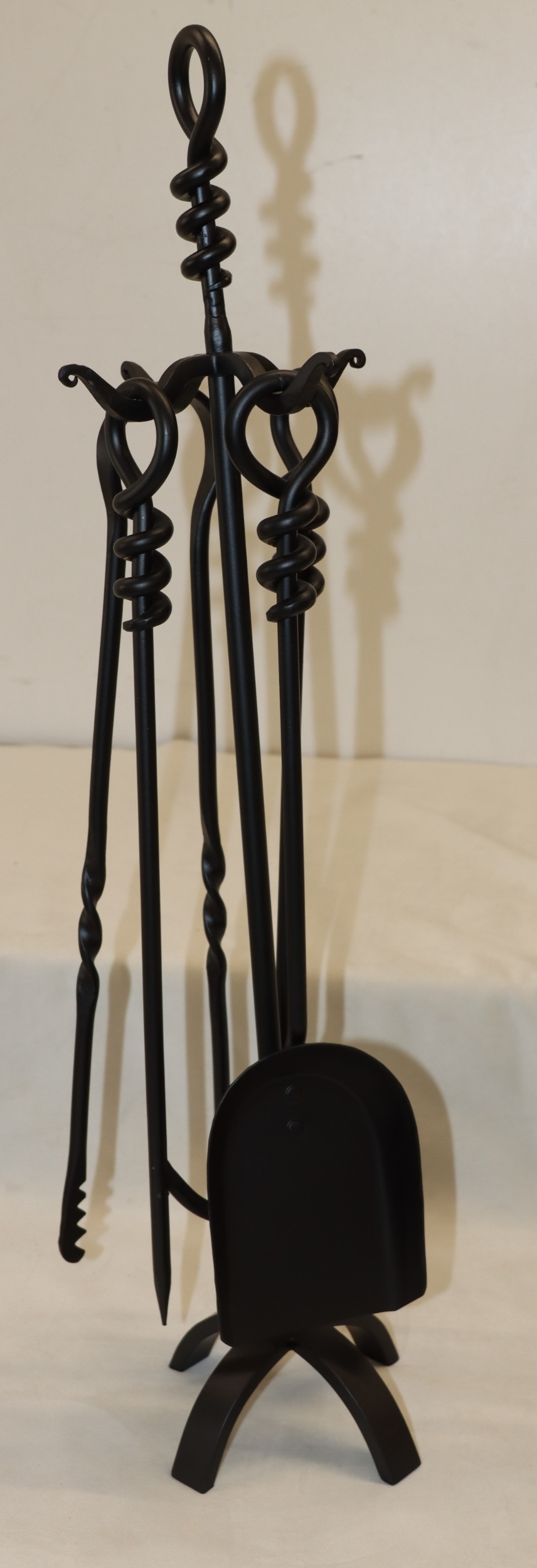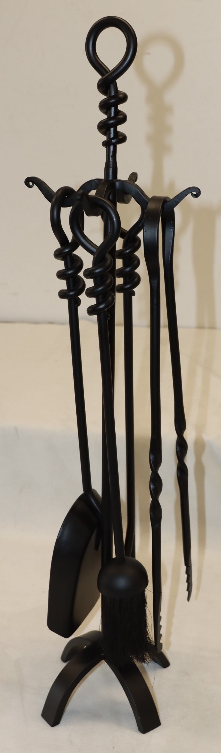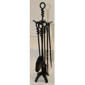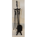 A 4-piece black metal fireside set, 76cm high.