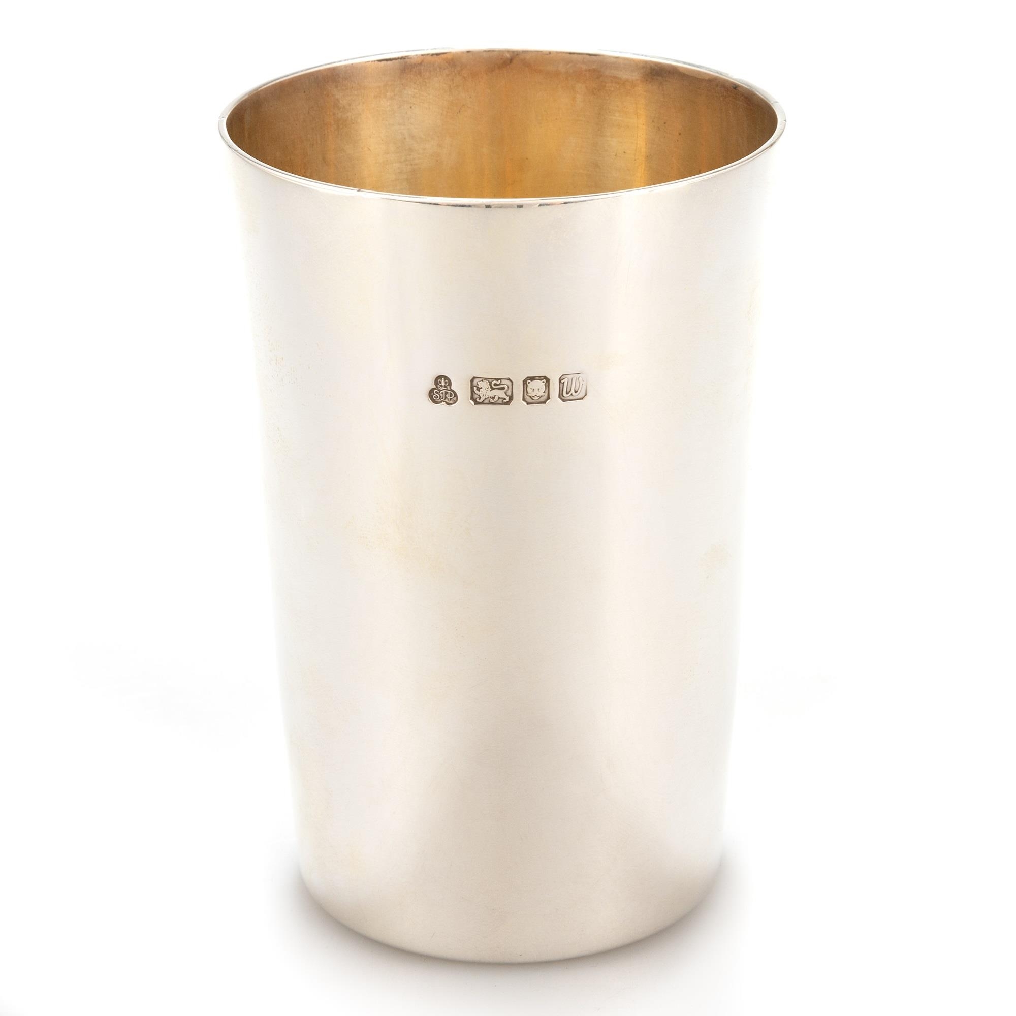 by Solomon Joel Phillips, London 1996, of plain tapering cylindrical form. 10.7cm high, 6.2 troy ounces