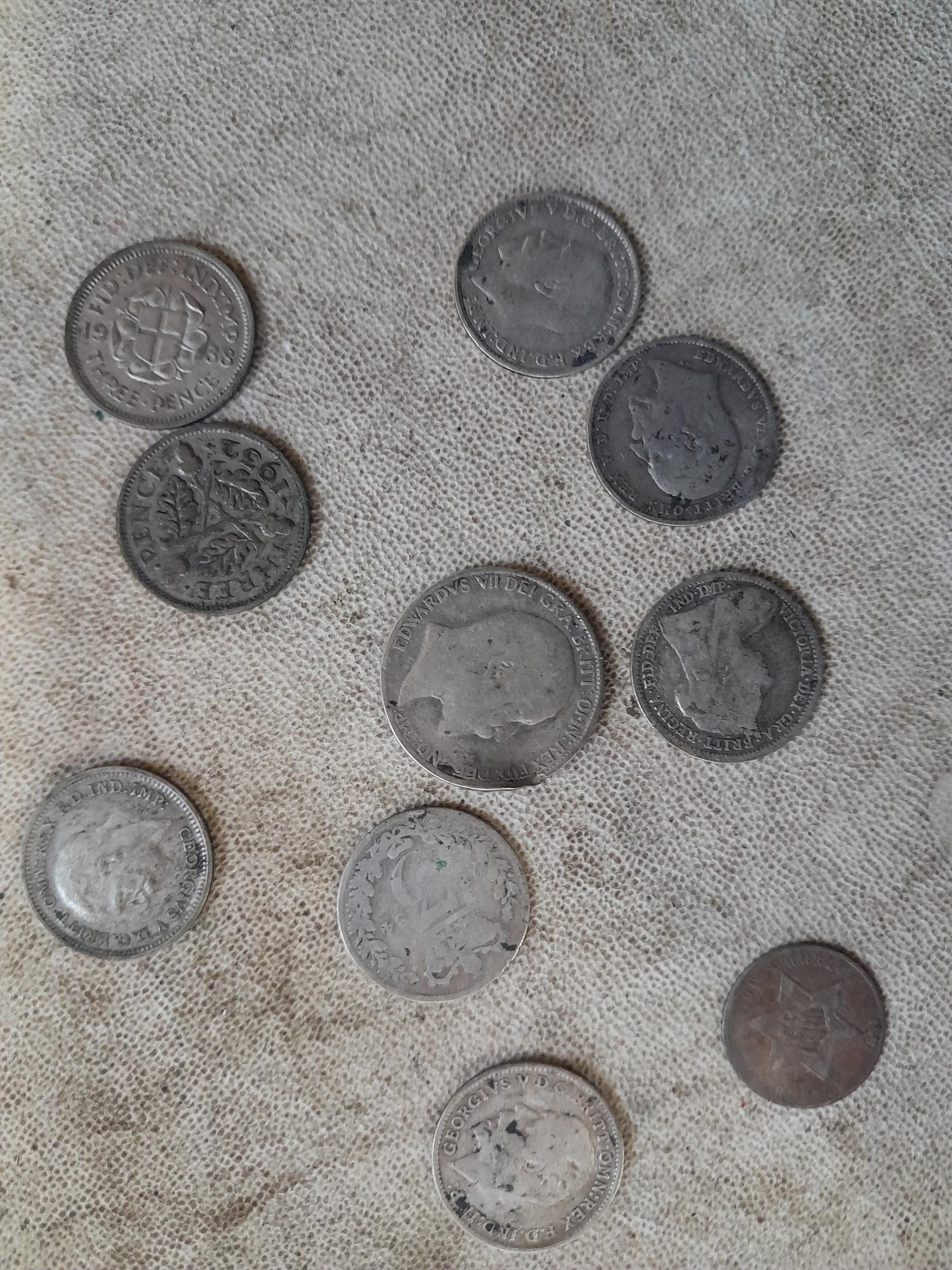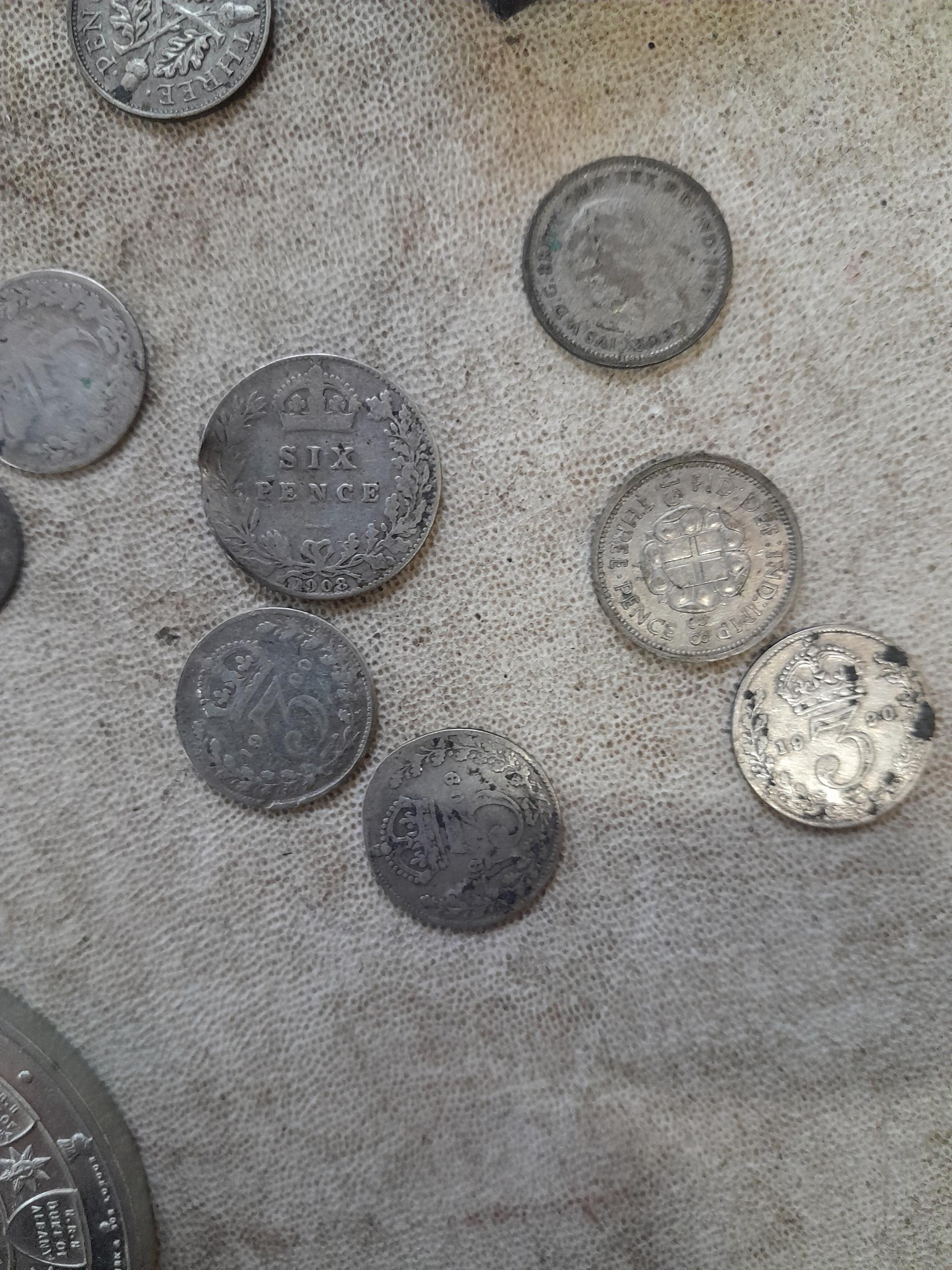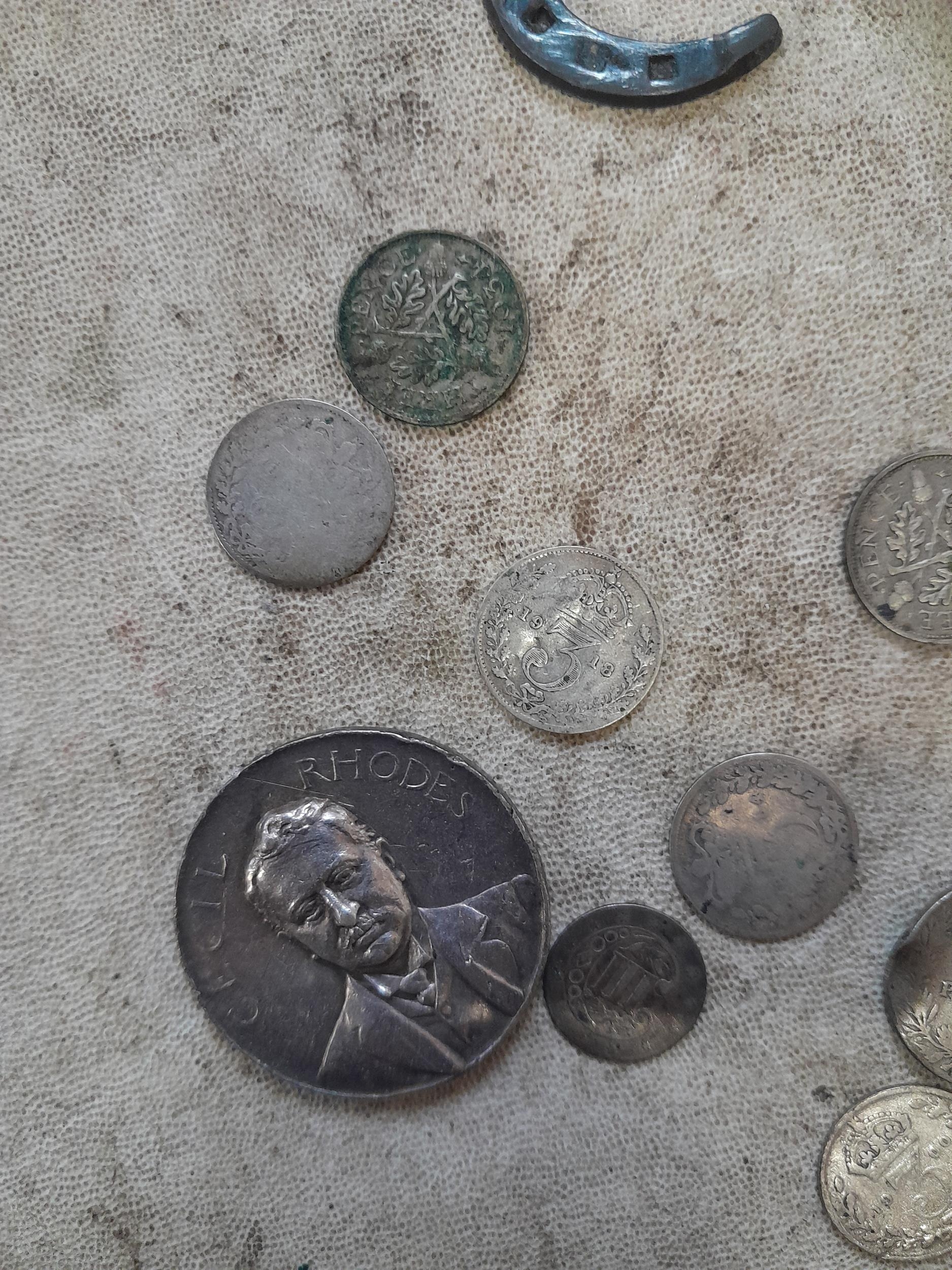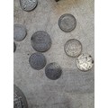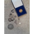 Coins : 800 silver 1 Rand in presentation box, silver sixpences and other coins condition varies