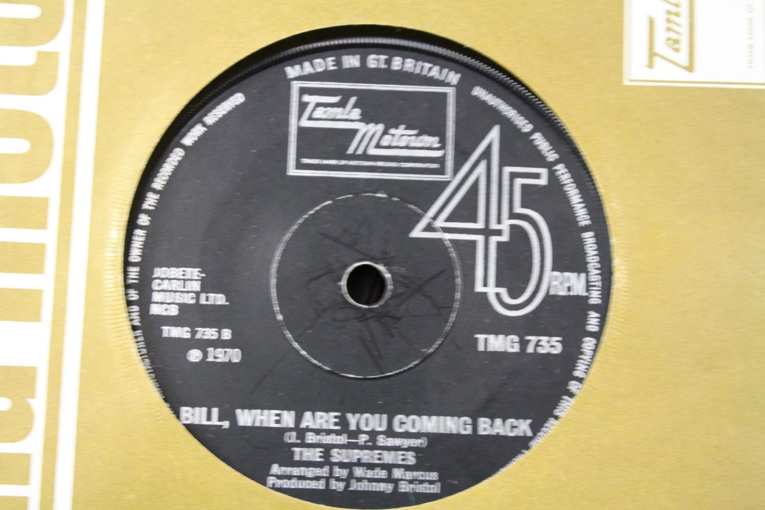 Vinyl - 50 Motown Soul / Northern Soul 7" singles including The Supremes, Jimmy Ruffin, Marv Johnson, Marvin Gaye, Jr Walker, Martha Reeves & The Vandellas, Smokey Robionson & The Miracles, The Contours, Isley Brothers, Temptations, R Dean Taylor, Edwin Starr, Eddie Kendricks and more. Mainly in company sleeves, some loose. Vg overall. Features some demos.