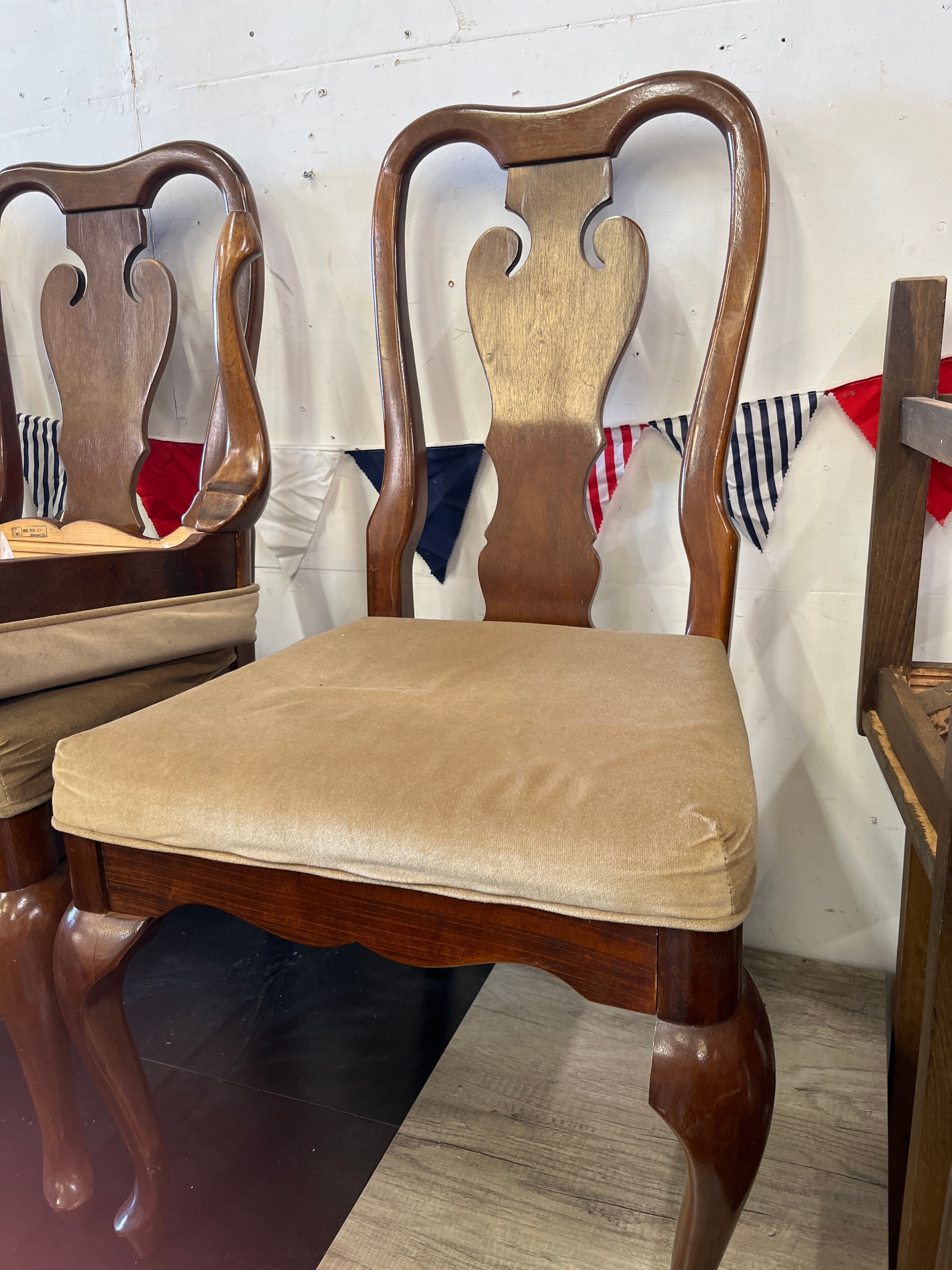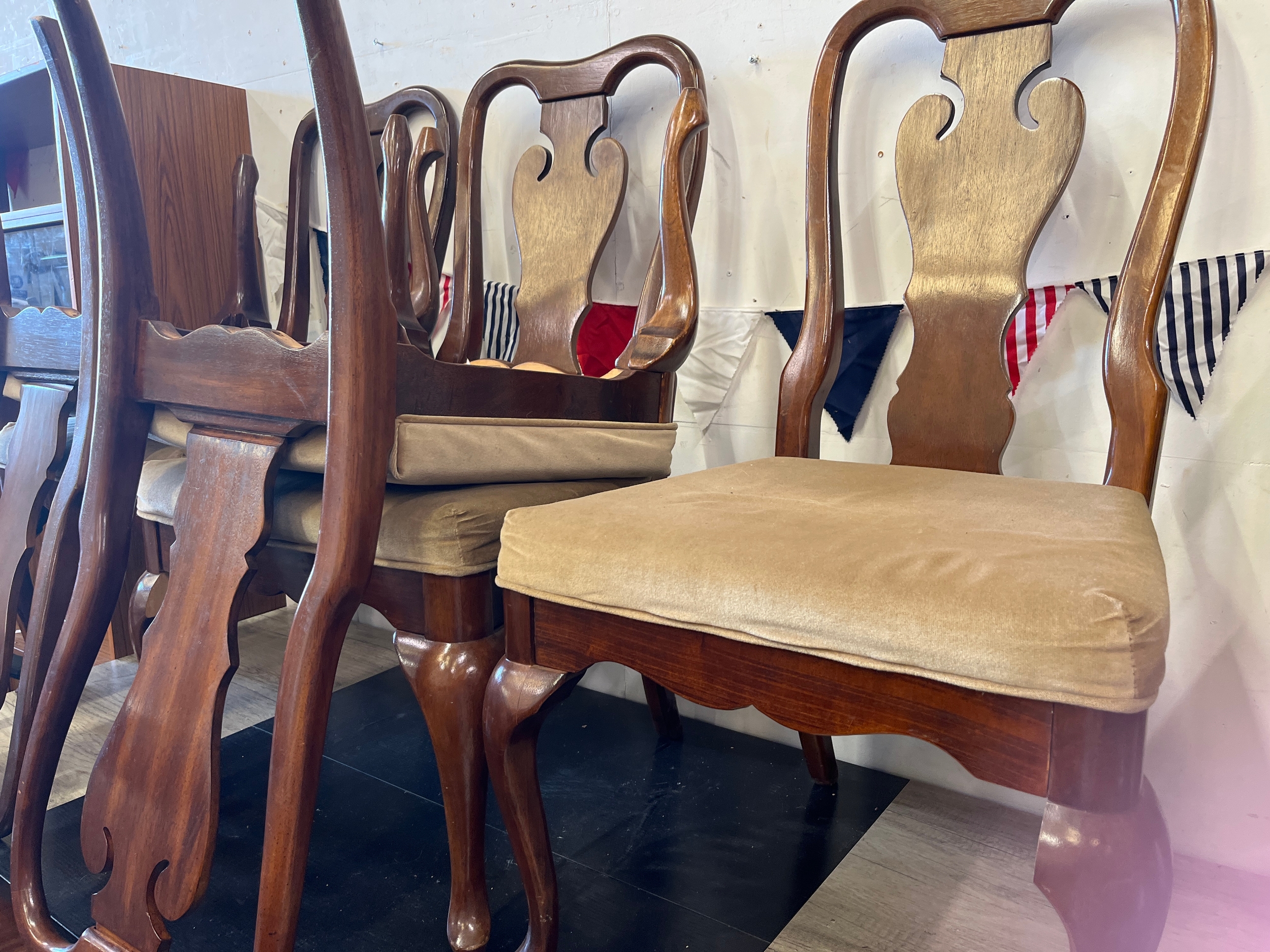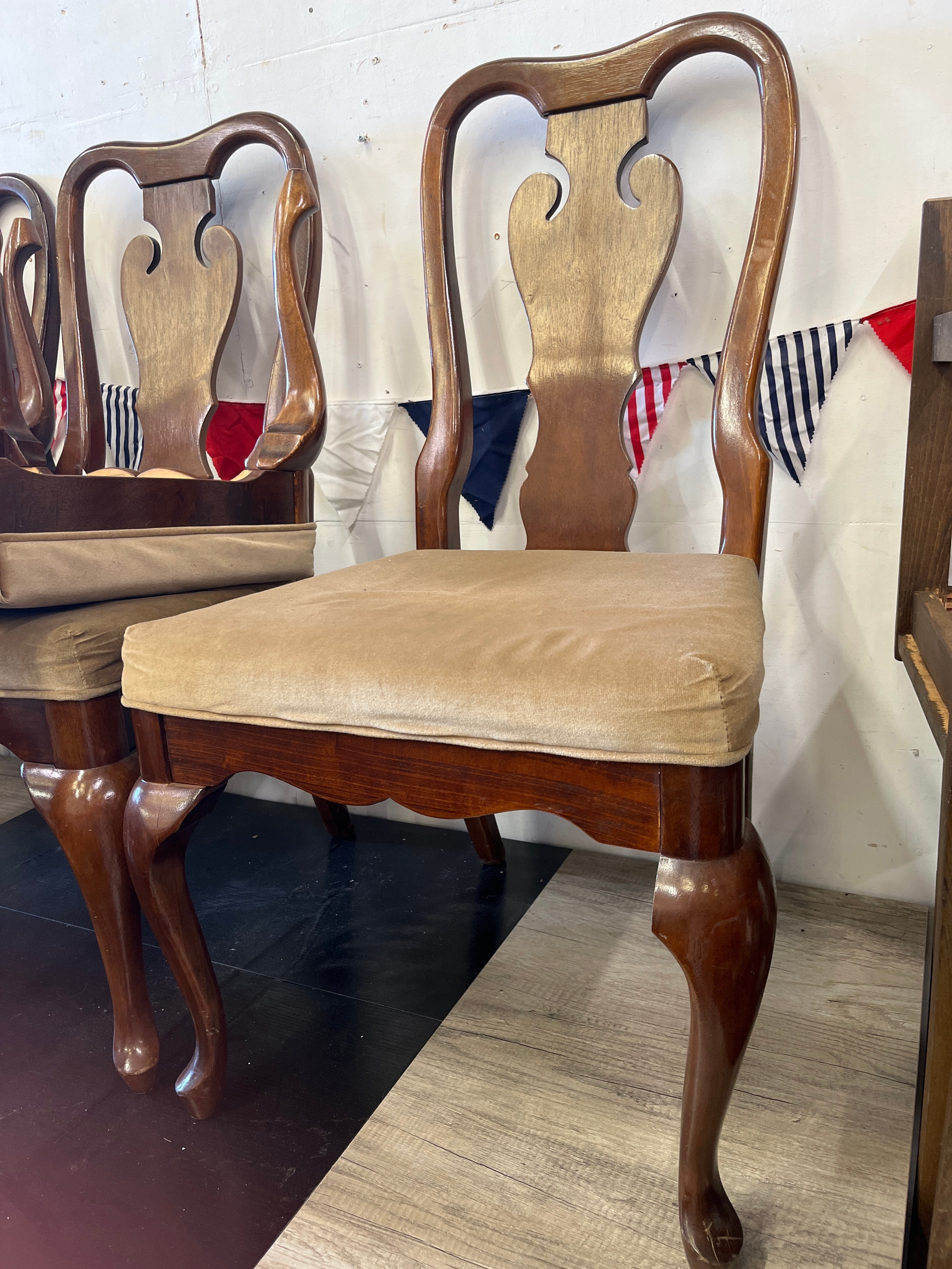 Set of 6 Queen Ann style chairs with cushioned seats