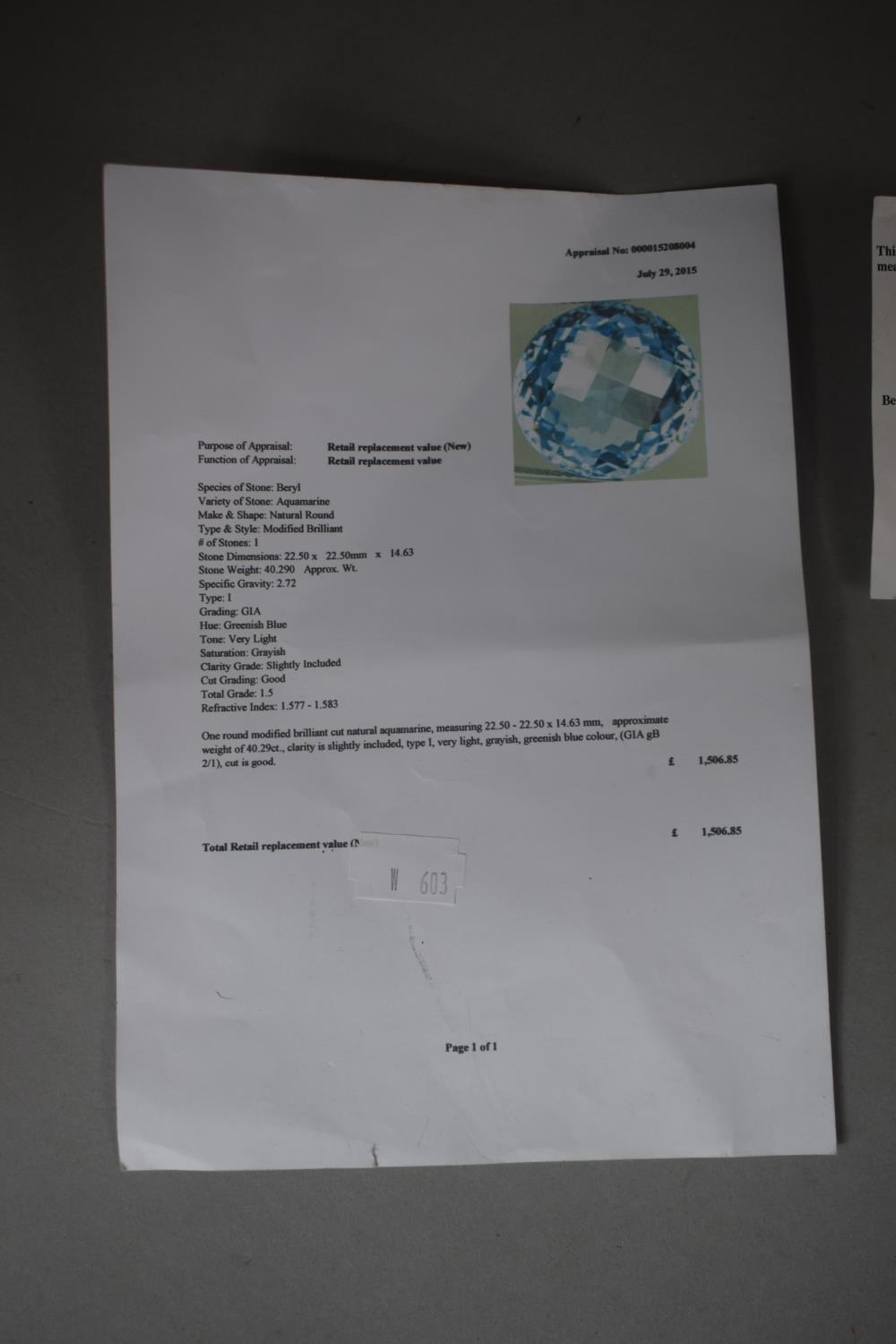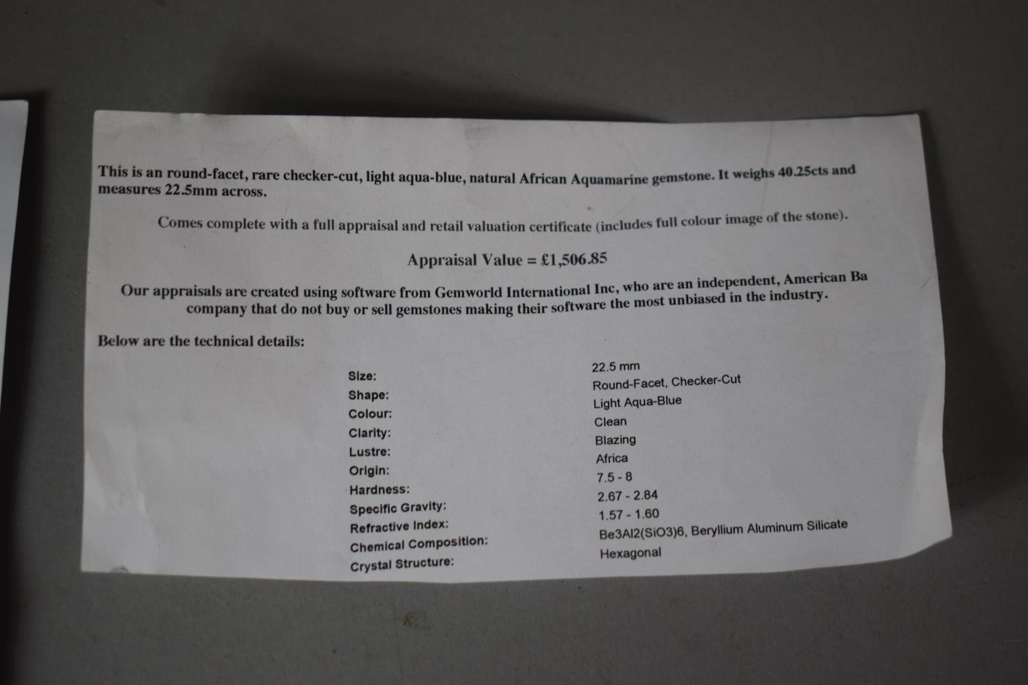 A 22.5mm African Aquamarine, with Appraisal Value of £1506.85