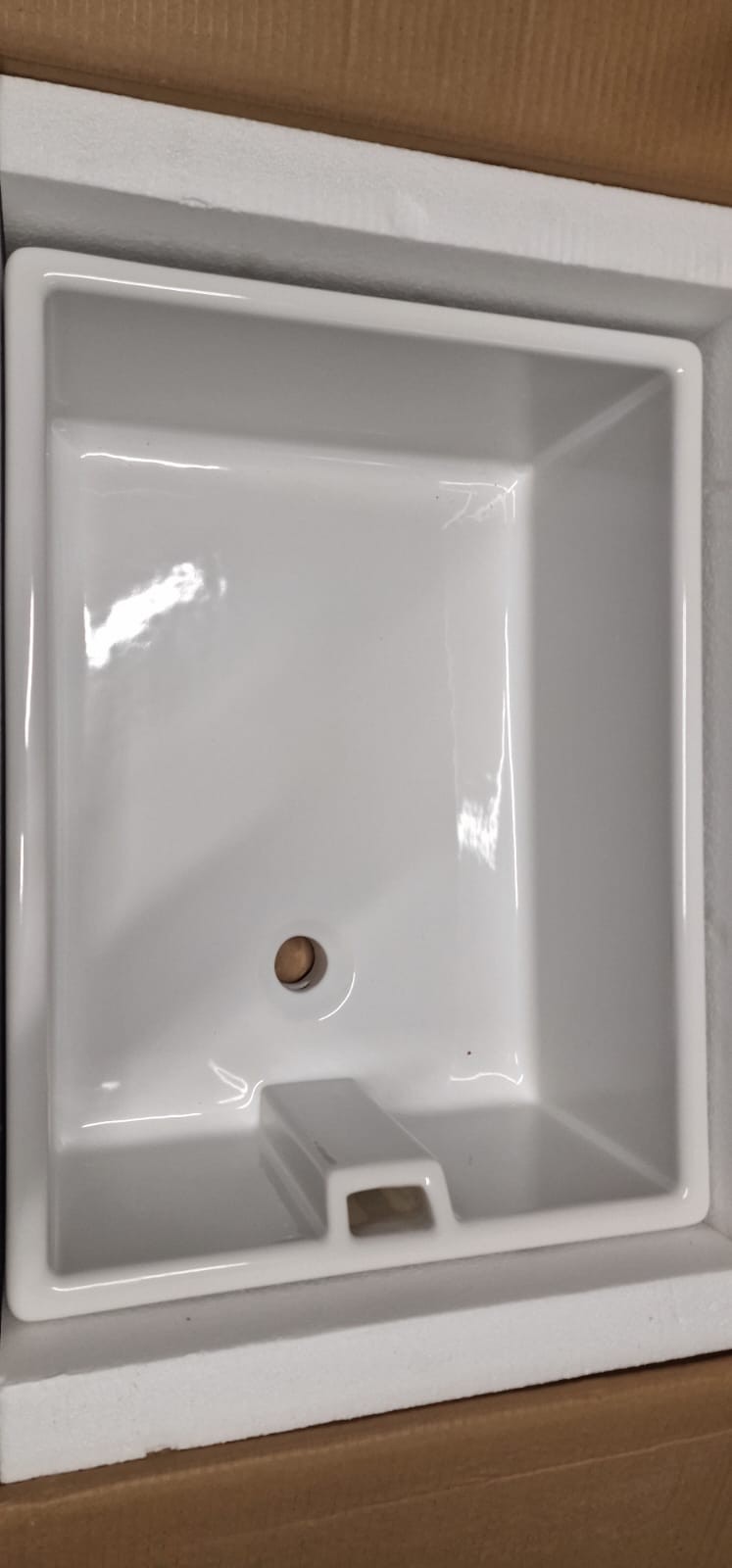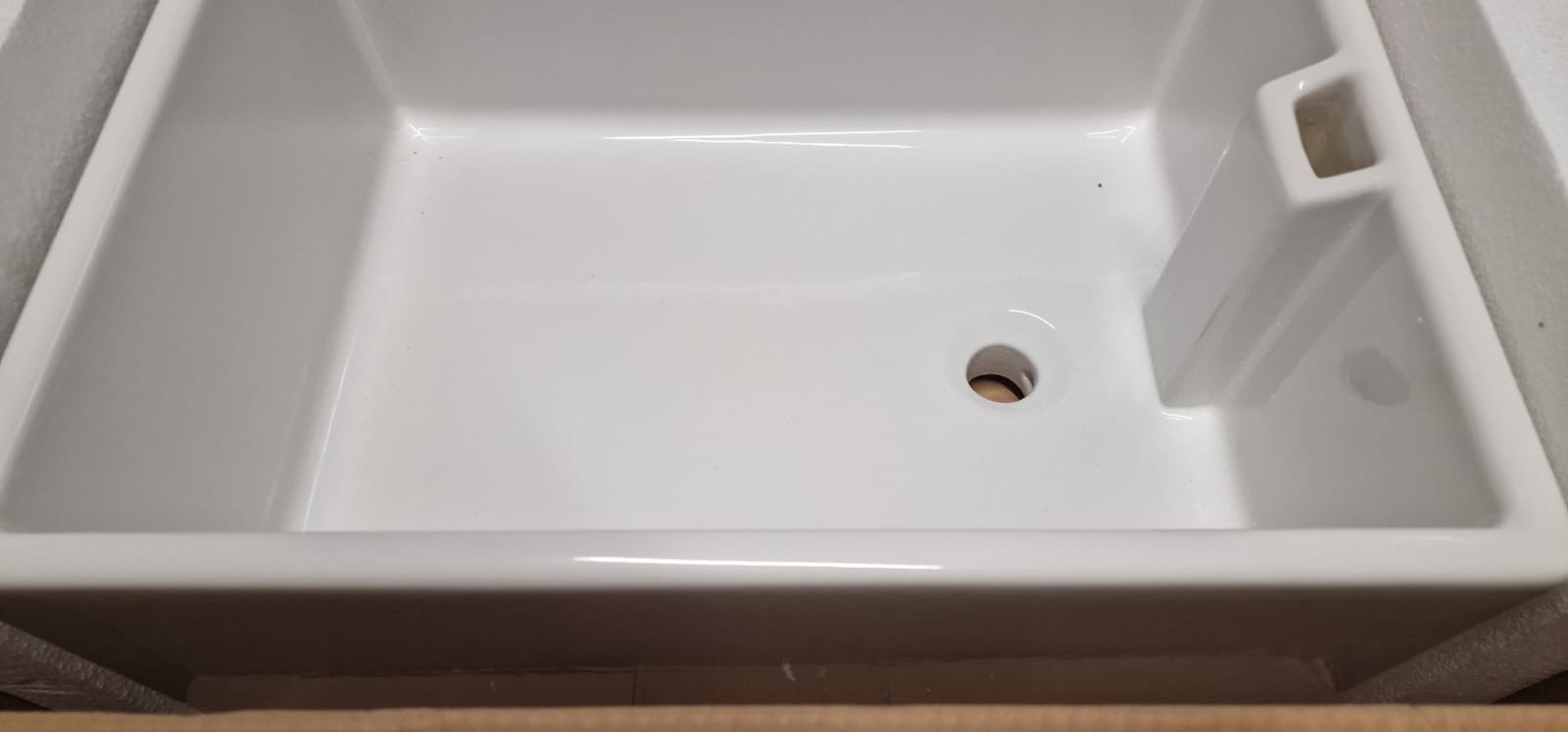 Bekfast sink new 61x46x24cm The item is a white ceramic or fireclay kitchen sink, likely a Belfast or Butler style, known for its large, deep basin.