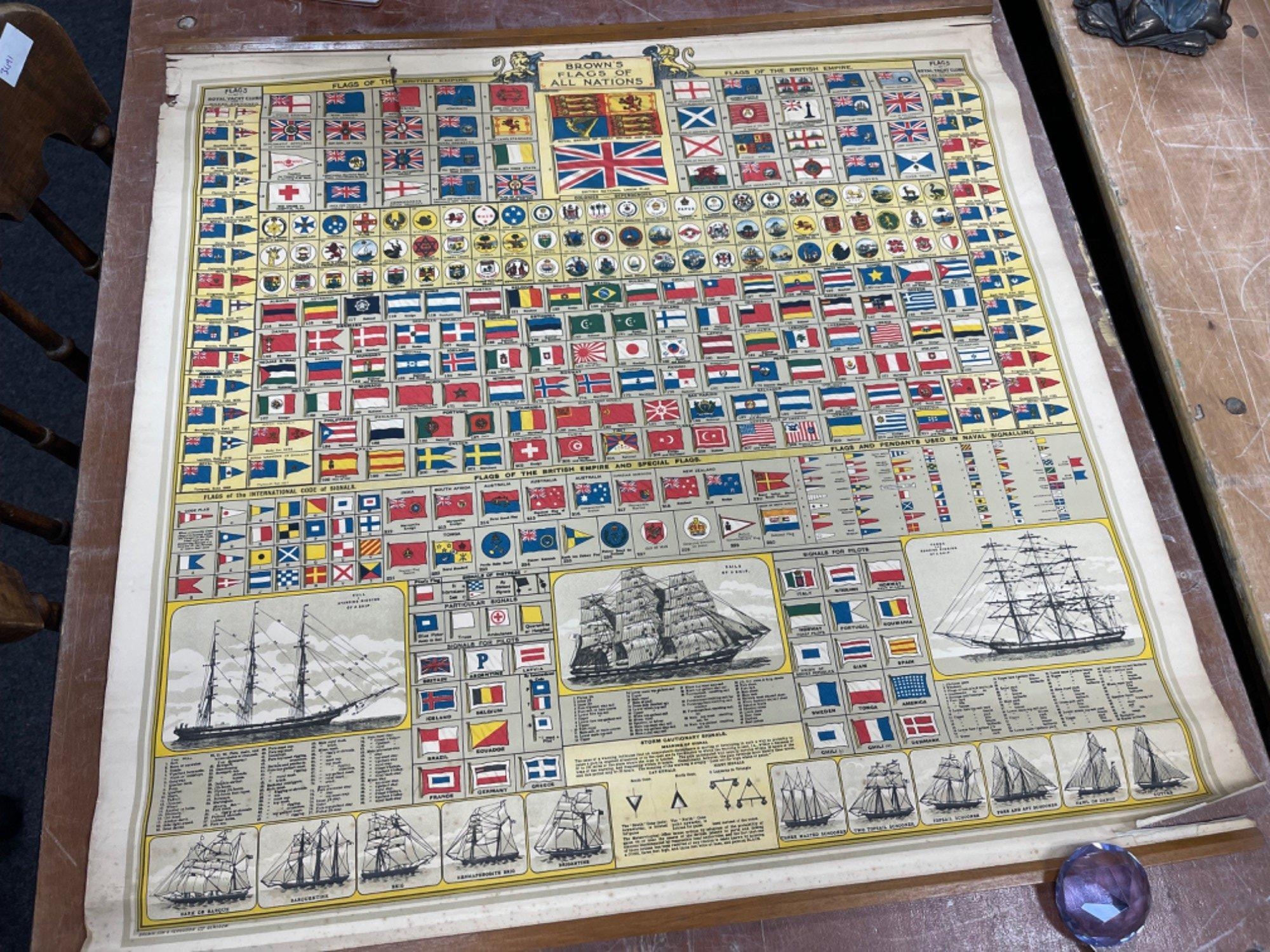 VINTAGE! BROWN'S ROYAL YACHT CLUB FLAGS OF ALL NATIONS wall chart, edges slightly torn and a tear at the top of the map - otherwise an extremely informative and educational wall chart! - dimension 28" square approx - by Brown Son & Ferguson Glasgow