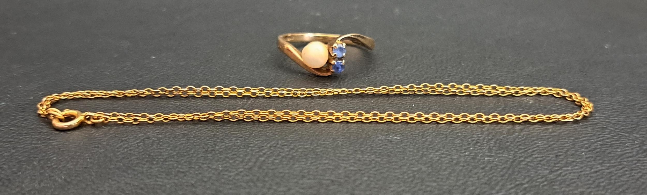 in nine carat gold, ring size O and approximately 2.2 grams; together with a nine carat gold neck chain, 41cm long and approximately 1.1 grams