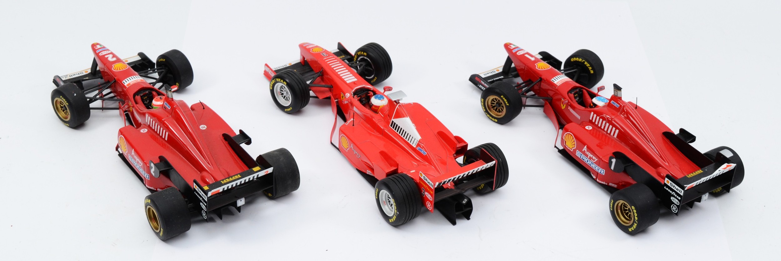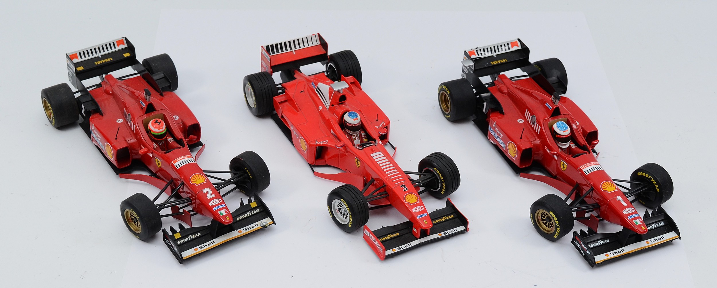 Minichamps model 1998 Ferrari F300 and two 1996 Ferrari F310, 1:18 scale (3).