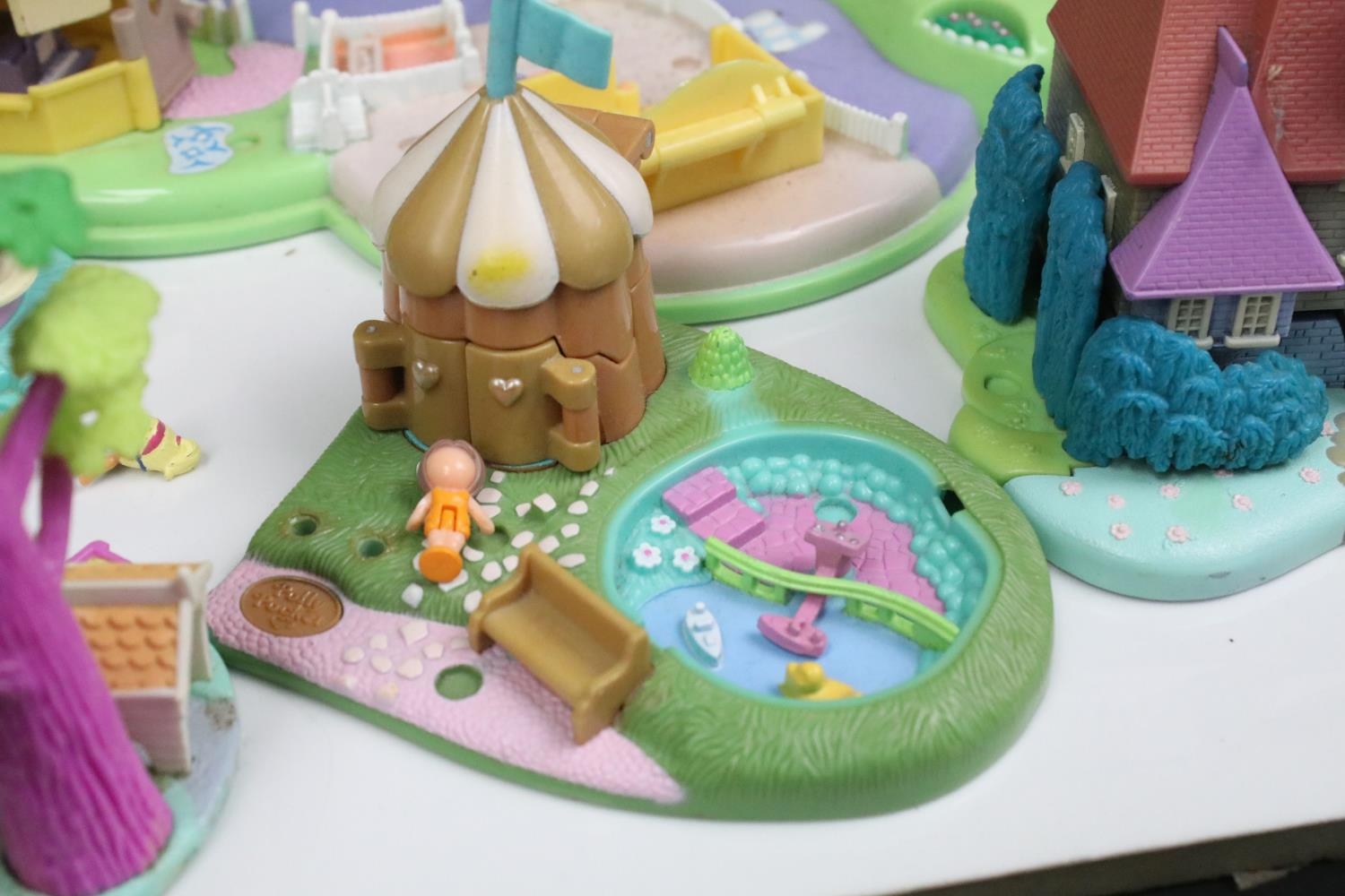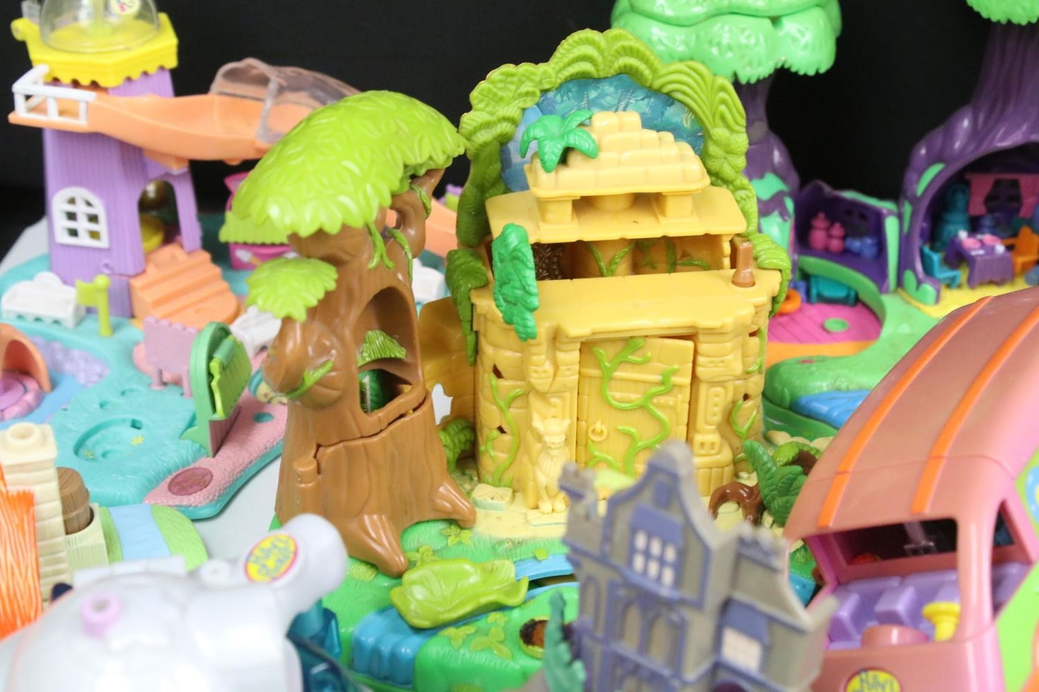 Polly Pockets - 14 Bluebird Polly pocket village sets to include Polly's Dream World, Magical Movin' Pollyville Boutique Playset, Pizza Restaurant, Wedding Chapel, Disney Winnie The Pooh 100 Acre World, Pops Tour Bus Campervan, Spin Pretty Carousel Ride, Disney Snow White & The Seven Dwarfs Cottage, Disney Jungle Book Playset, Disney 101 Dalamtians Puppies Adventure, Fun Fair Rides N Surprises, Ballerina Grand Ballet Compact playset, etc, all showing signs of play wear
