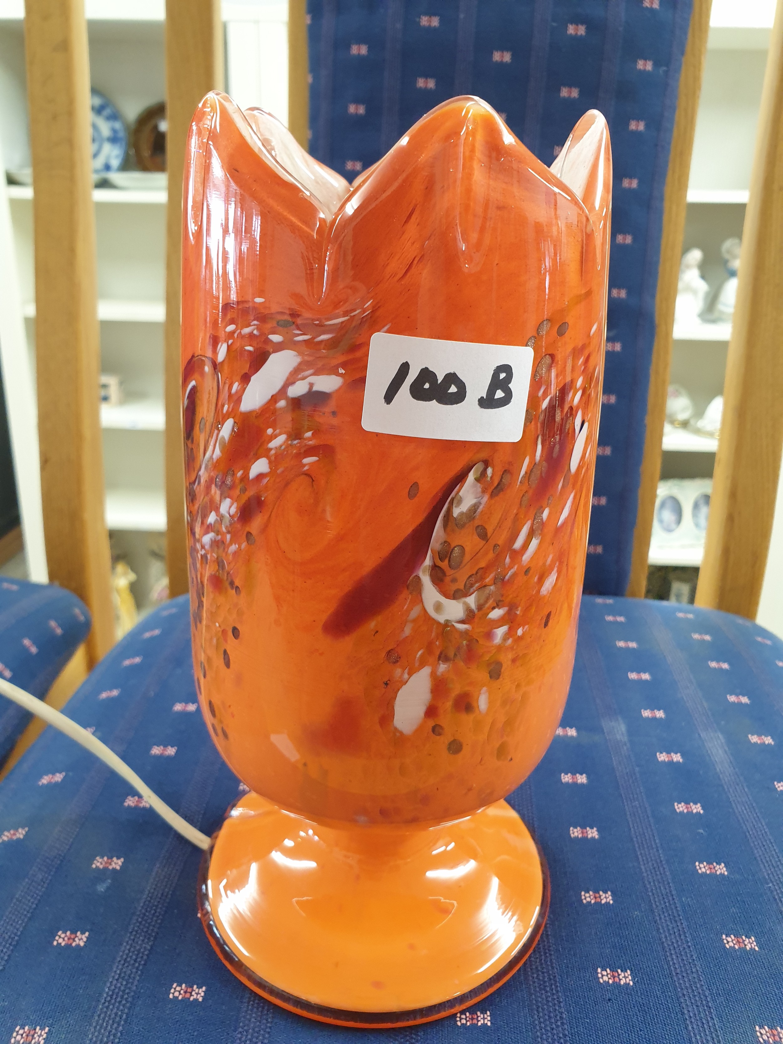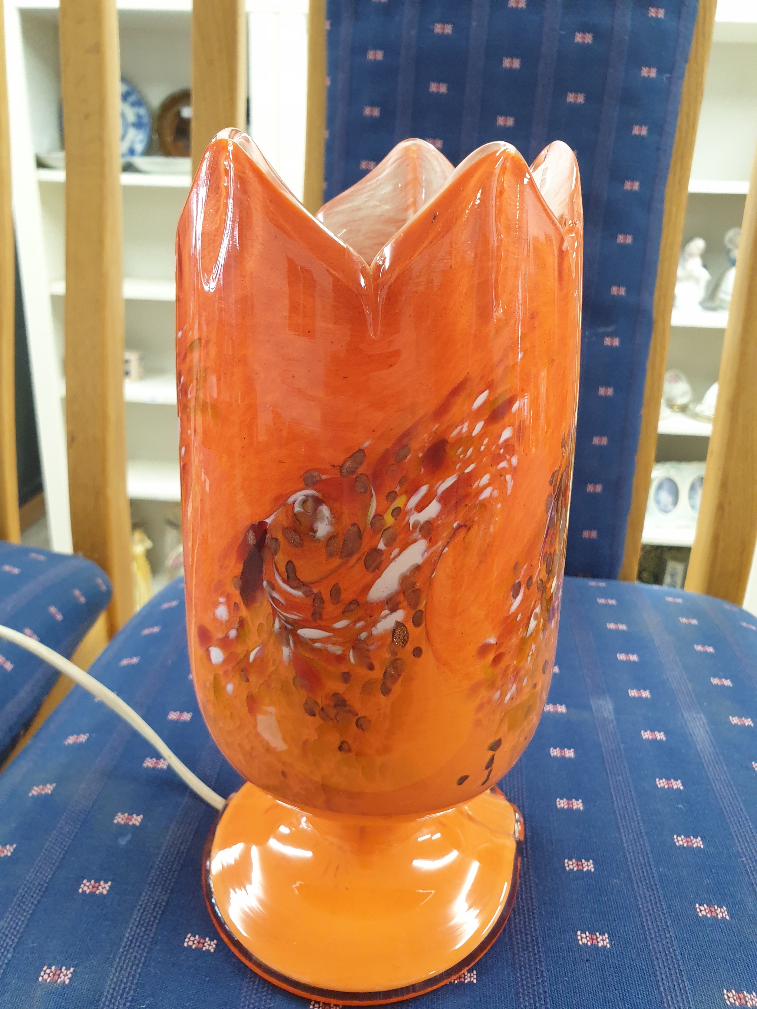 Large Vasart Tulip Lamp 150 to 300 26cms Tall Largest Diameter 11cms Orange Backgroun Multi Colour Swirls
