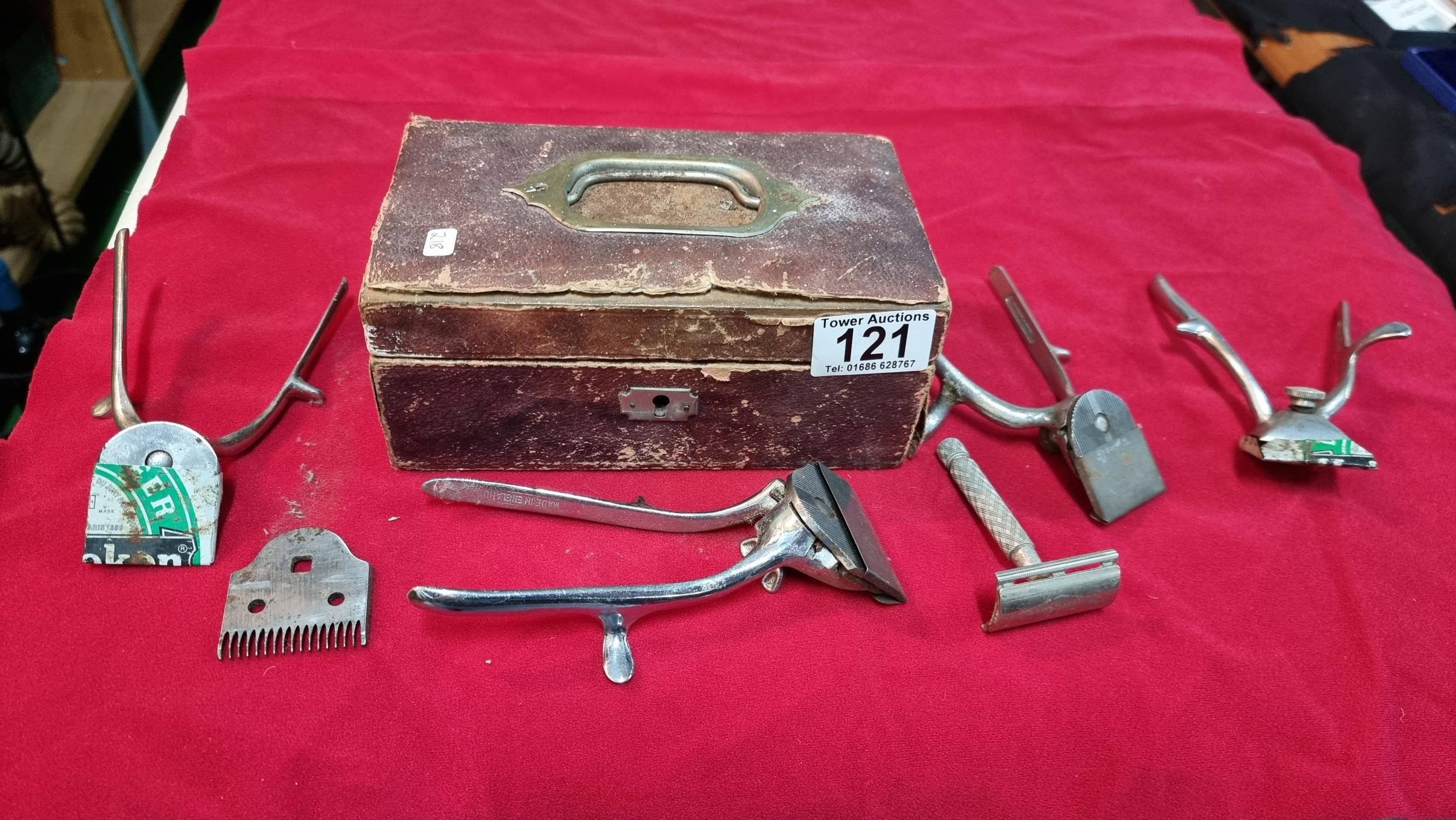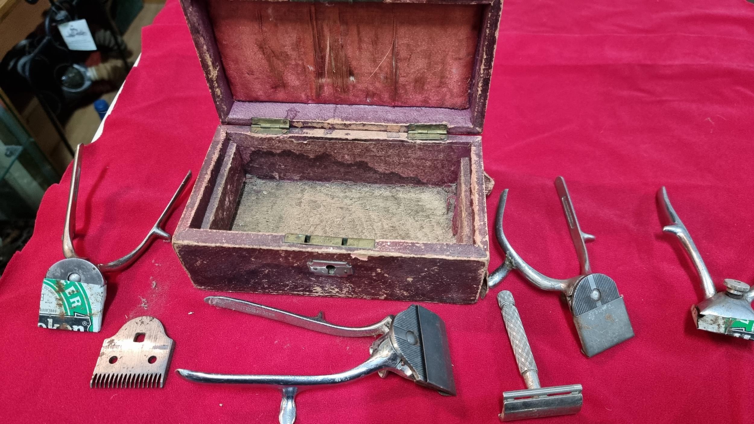 Box full of vintage clippers and shavers