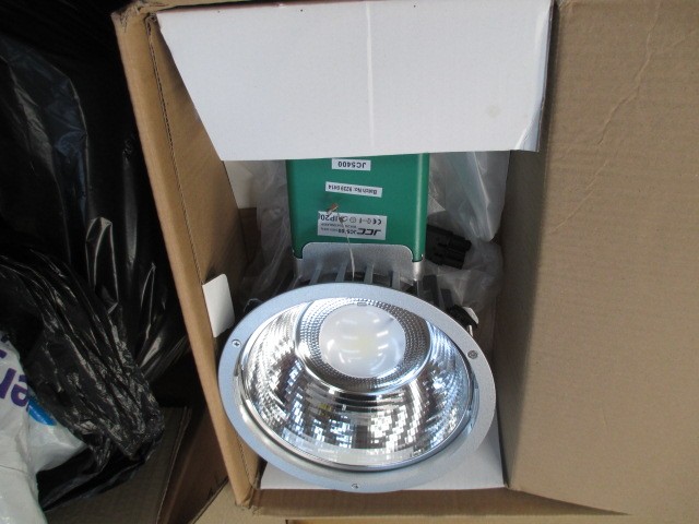 Lot inc four JCC coral advanced LED light fittings with Coral LED rim attachments, kitchen tap and bulbs.
