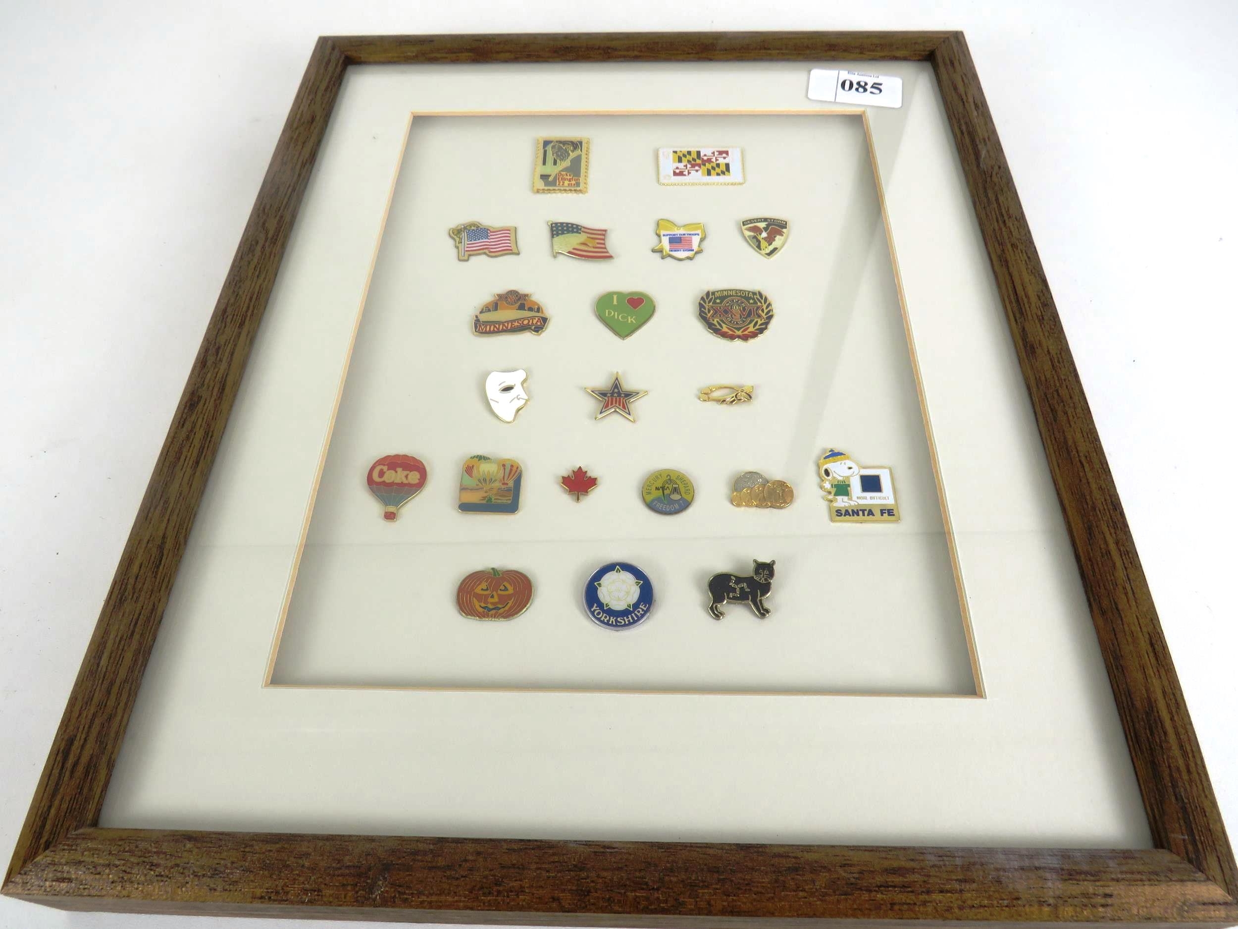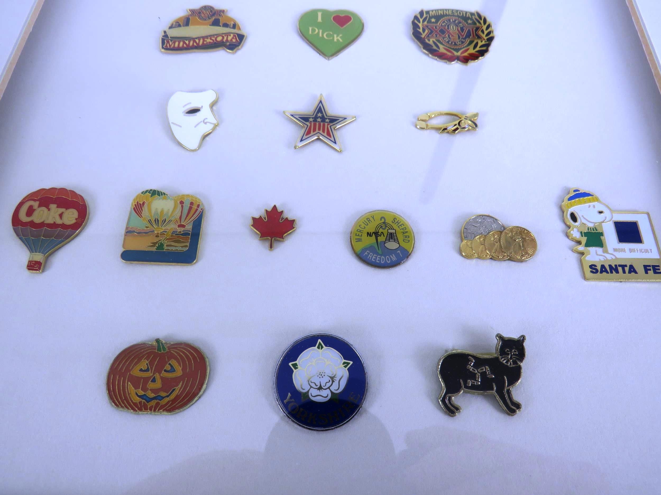 21 x FRAMED PIN BADGES INCLUDES COCA COLA ETC
