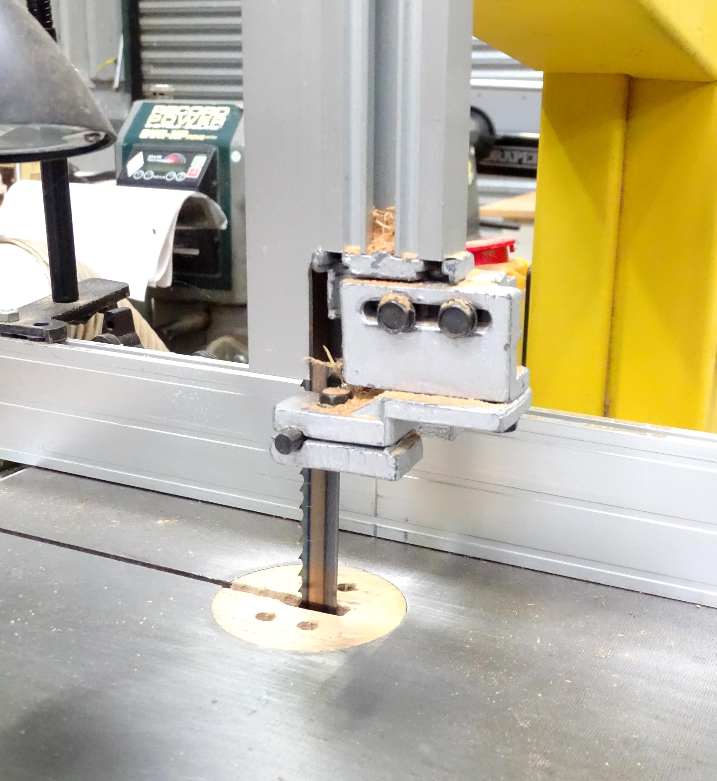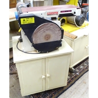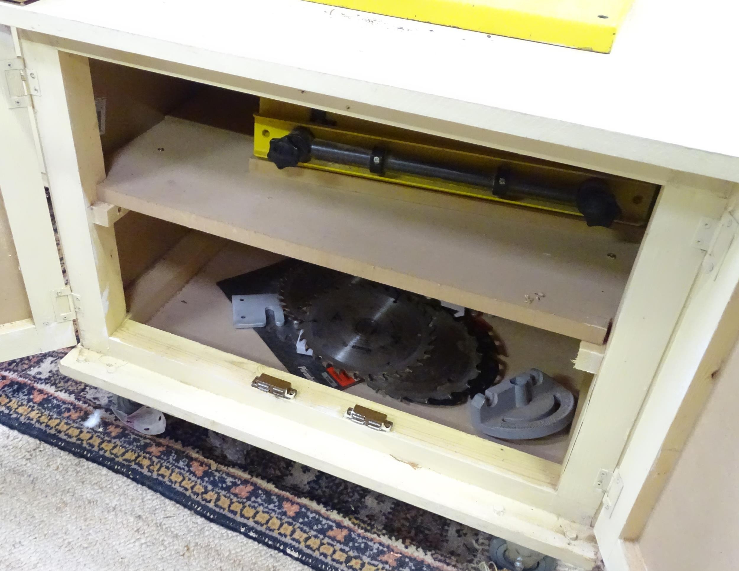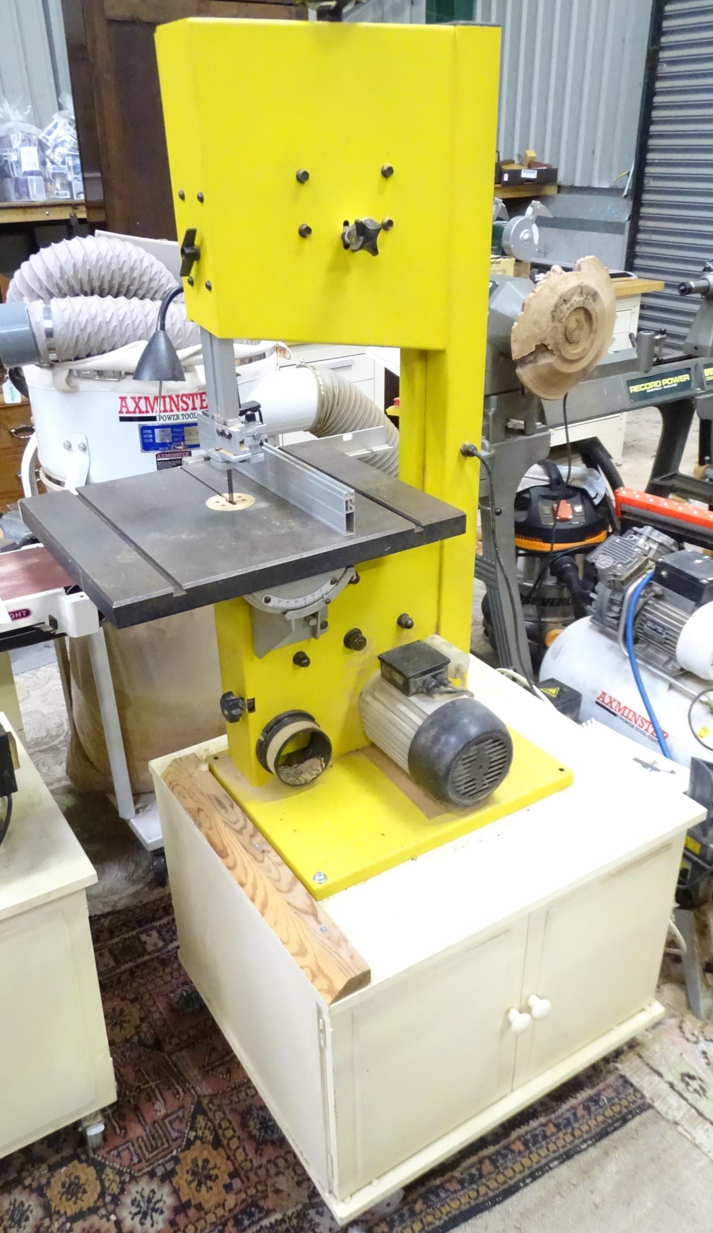 Workshop Tools : a Perform 170mm bandsaw, with cupboard base containing accessories, spare blades etc. Approx 64" tall