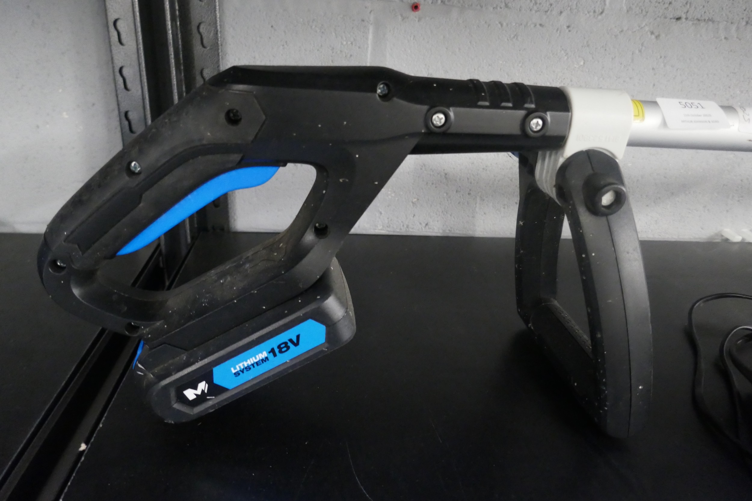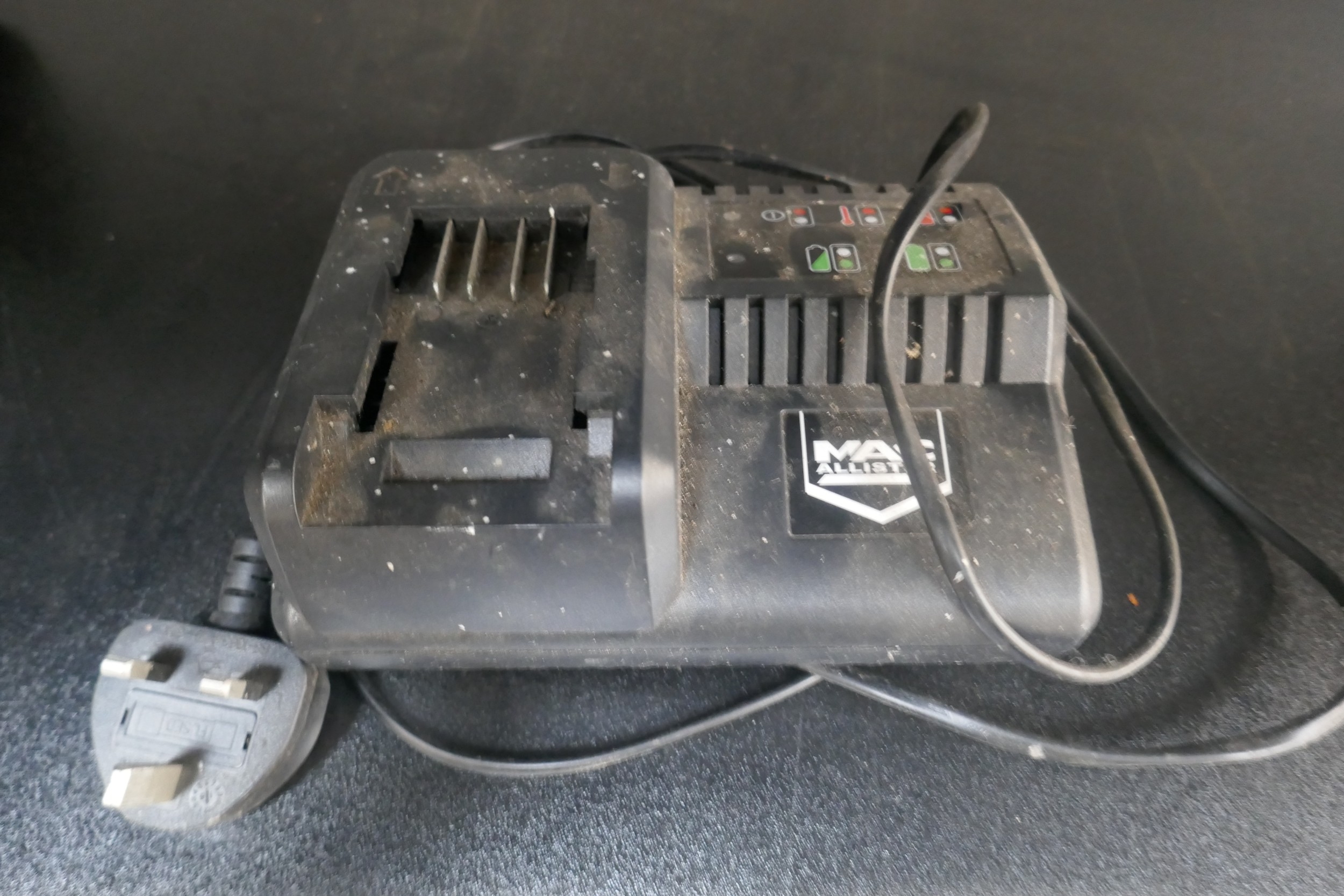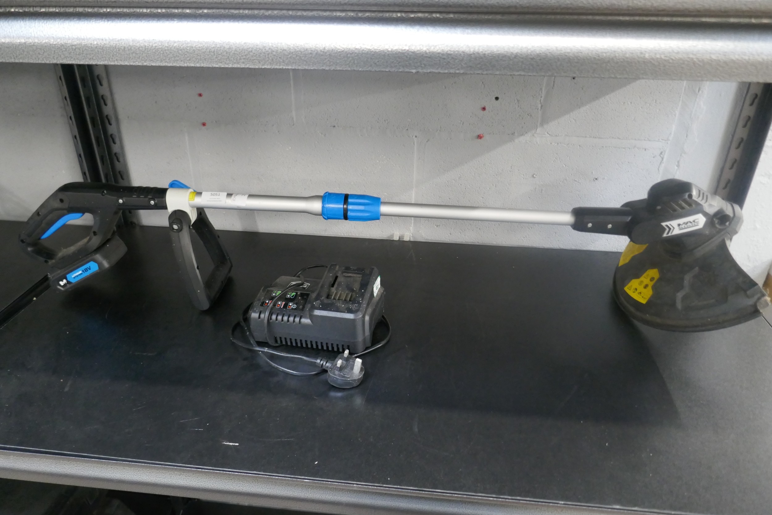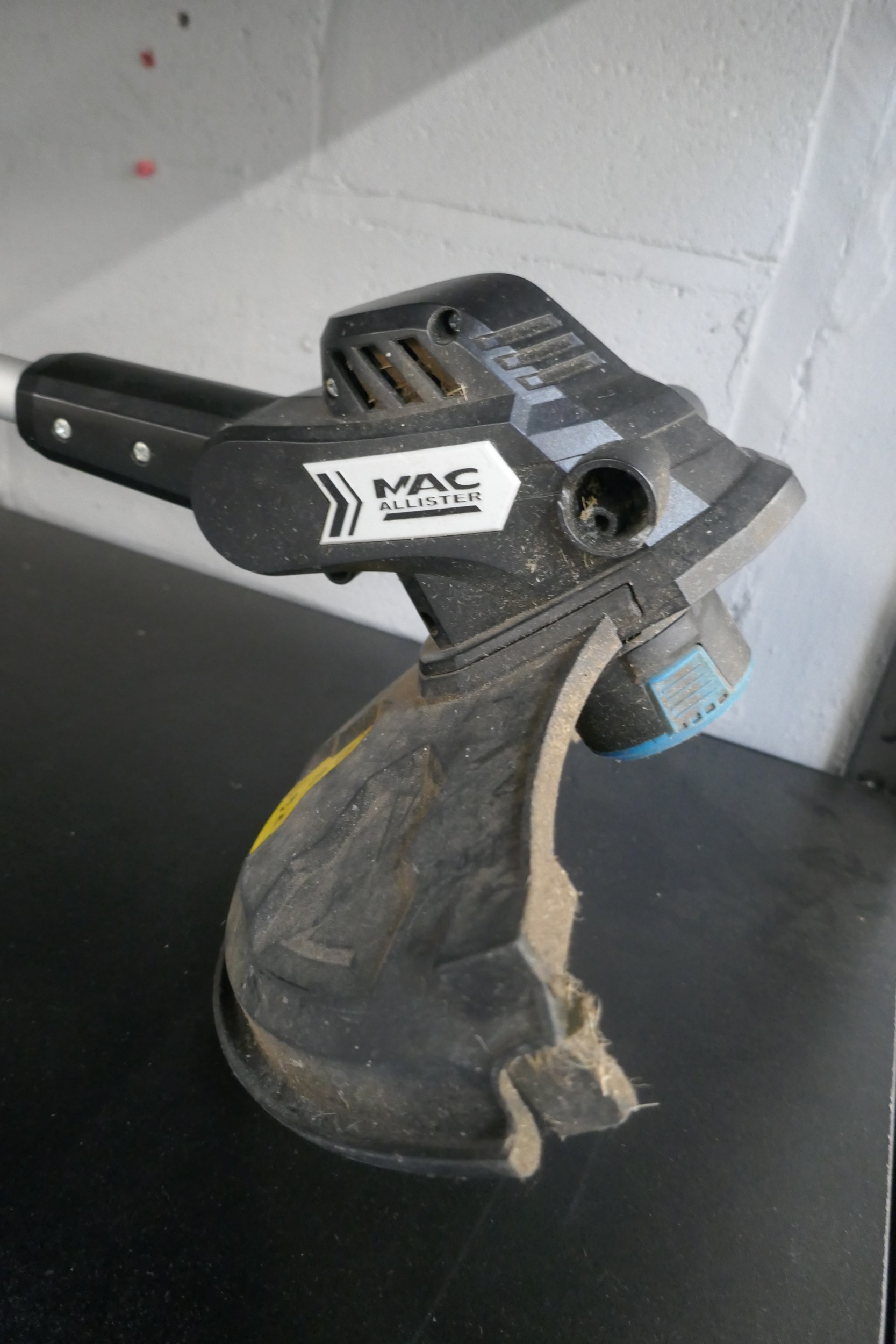 A Mac Allister 18V battery strimmer with charger
