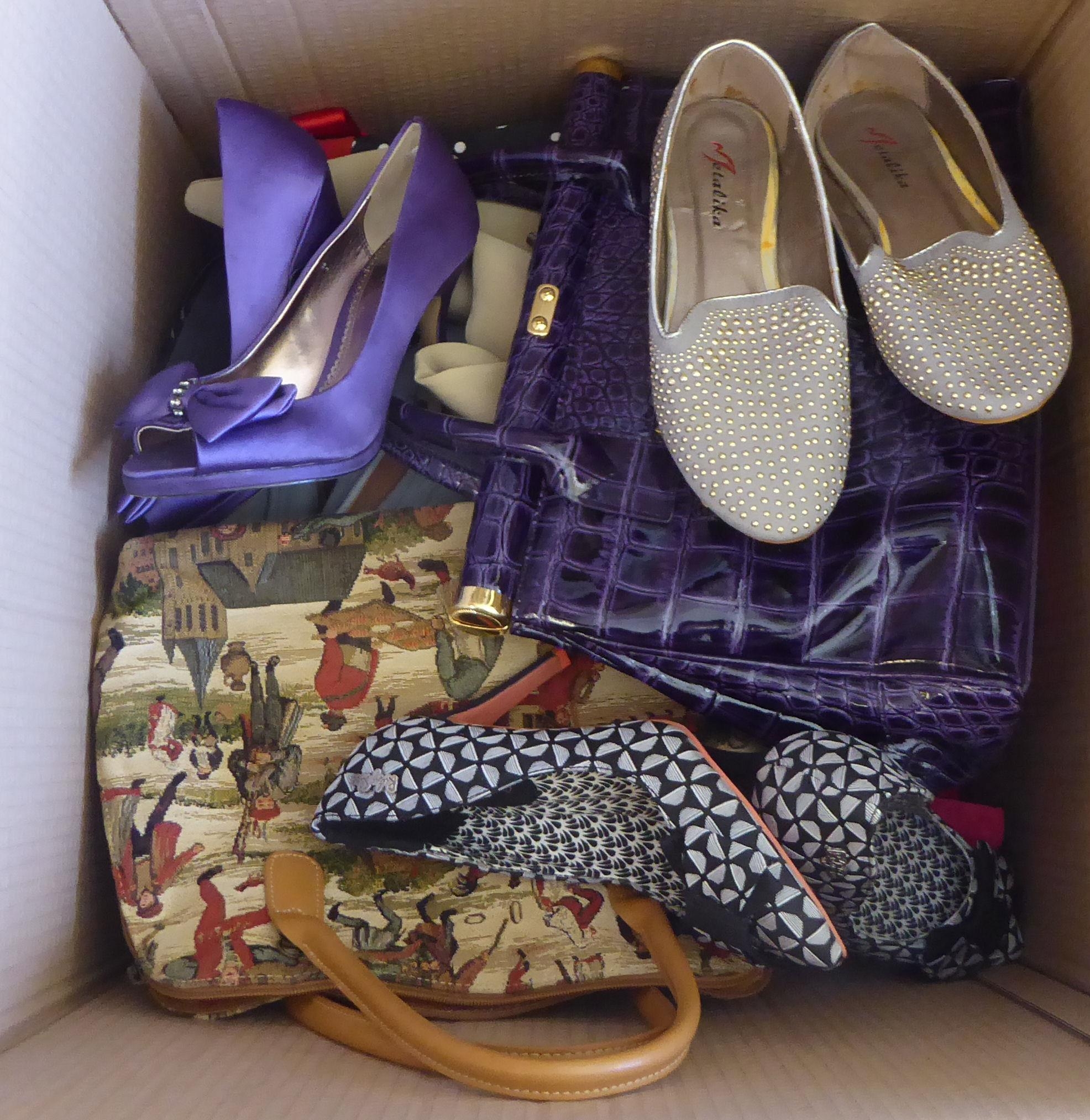 Ladies fashion accessories: to include purses, handbags and shoes, with examples by DKNY, Roman Tervza, Jamie Mascaro, New Look and Royal