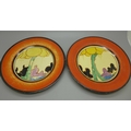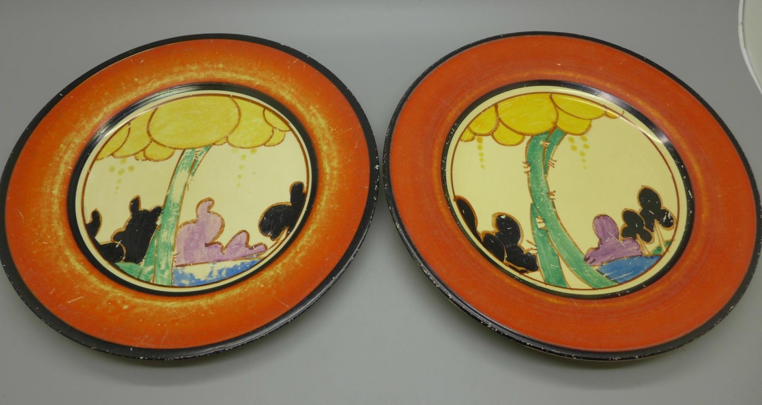 A pair of Clarice Cliff Fantasque Summerhouse pattern side plates, 19.5cm
