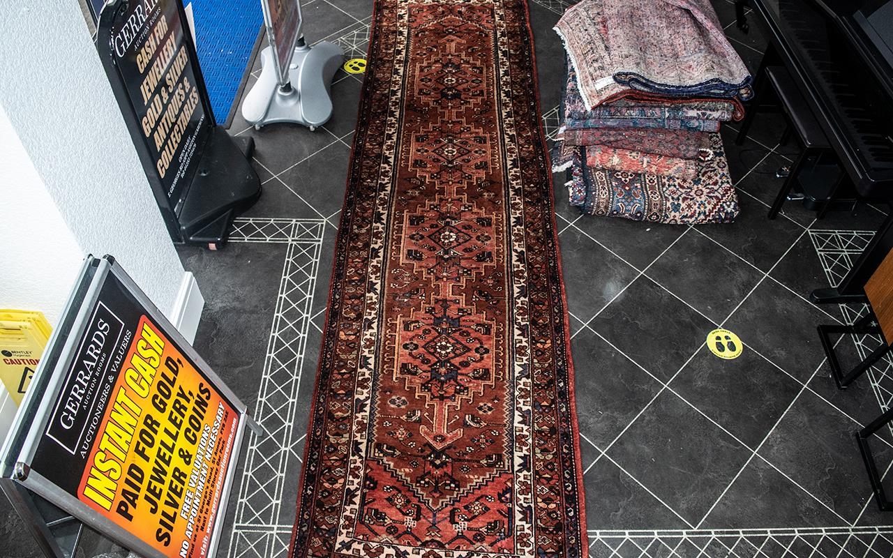Beautiful Iranian Terracotta Ground Carpet/Rug Hamadon Medallion Design. Label reads Made in Iran. Measures 380 by 100 cms.As new condition