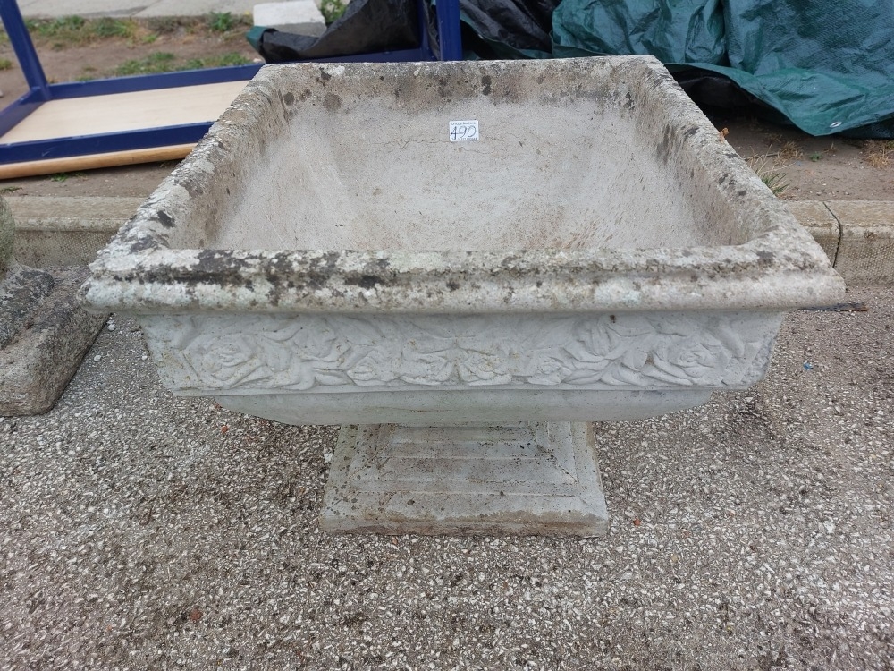 A large square concrete planter
